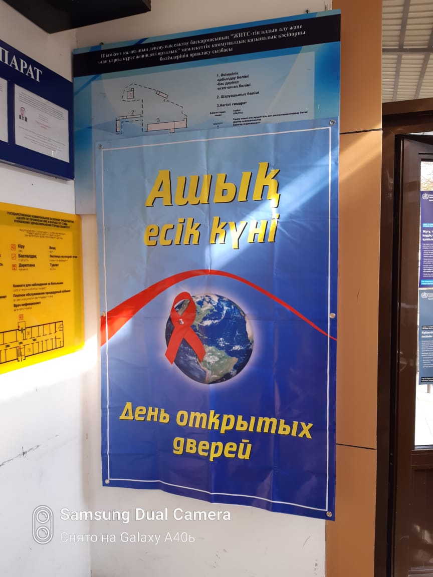 Шымкент қаласының ДСБ «ЖИТС-тің алдын – алу және оған қарсы күрес жөніндегі орталық» МКҚК-ның 1-желтоқсан Дүниежүзілік ЖИТС-ке қарсы күнге орай «ТЕҢСІЗДІКТІ ЖОЮ. ЖИТС-ті ТОҚТАТУ. ПАНДЕМИЯНЫ АЯҚТАУ» тақырыбында 15.11.2021 жылы орталық мамандарының ұйымдастыруымен «АШЫҚ ЕСІК КҮНІ» өткізілді. Іс шара барысында АИТВ- инфекциясына жедел тесттен өтіп, мамандандырылған кеңес алды. АИТВ инфекциясын алдын алу мақсатынада ақпараттық, танымдық материалдар таратылды.