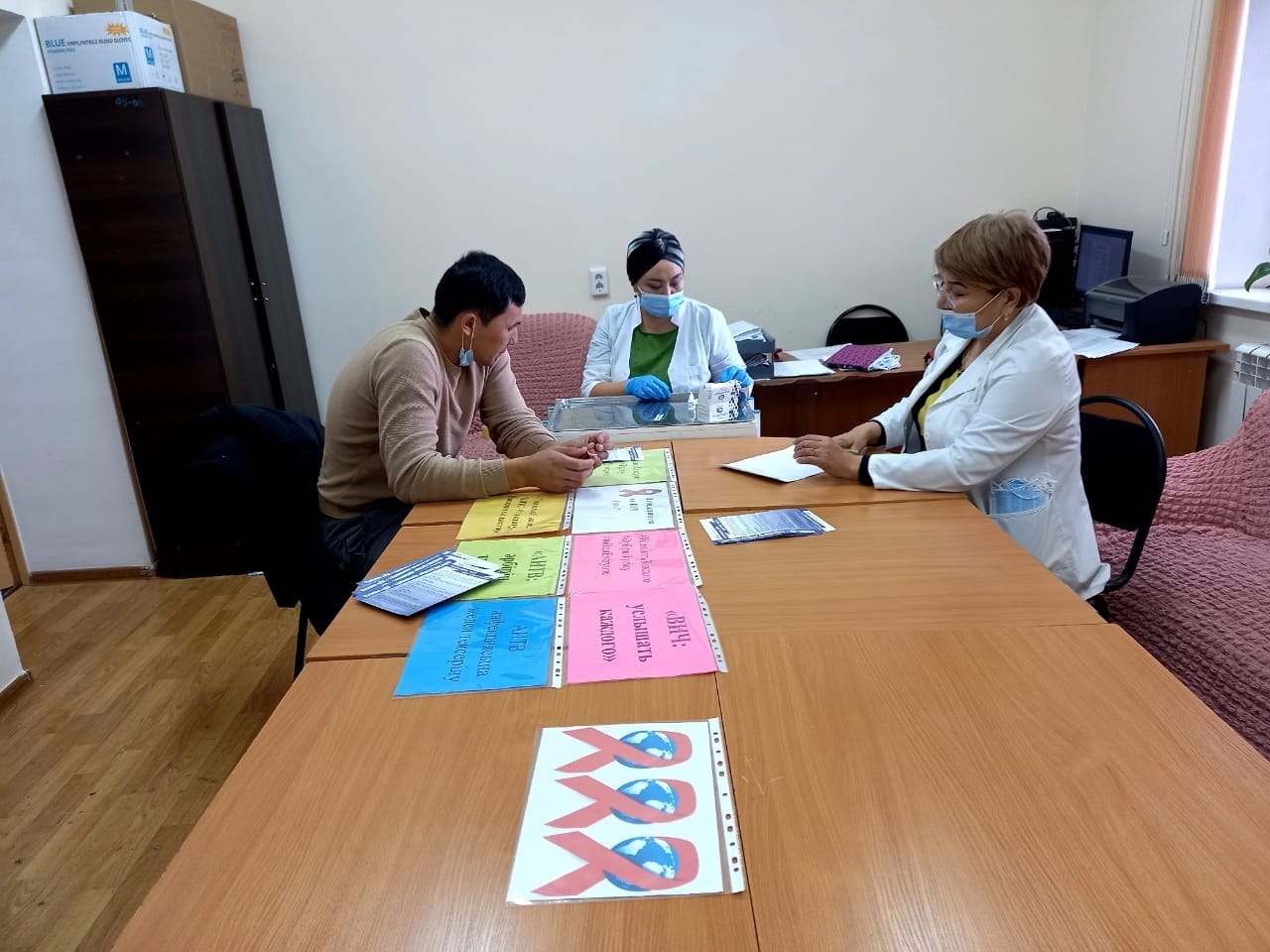 Қалалық ЖИТС орталығы профилактикалық жұмыстар бөлімінің эпидемиолог дәрігер Ф.Абдиева, эпидемилог көмекшісі Л.Джанабаева