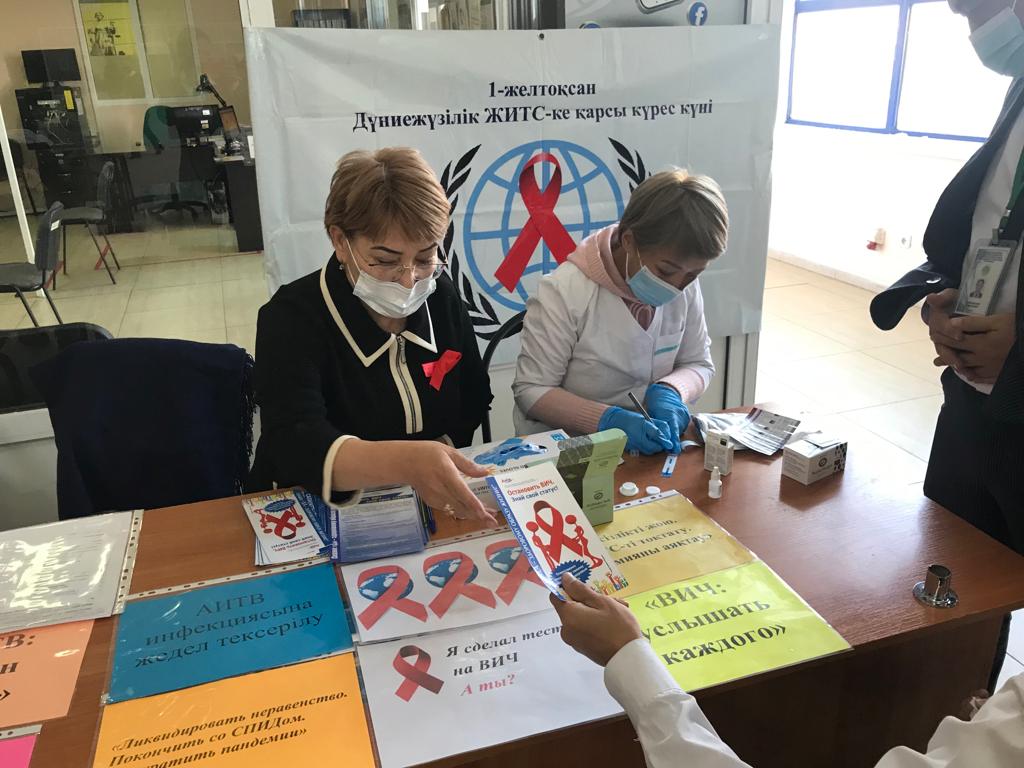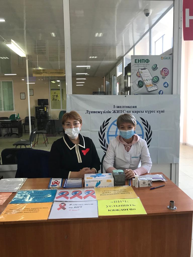 2021 жылдың 18 қарашасында Шымкент қаласы ДСБ-ның «ЖИТС тің алдын алу және оған қарсы күрес жөніндегі орталық» MKҚК-нің қызметкерлерінің ұйымдастыруымен Дүниежүзілік ЖИТС пен күрес күніне орай «Теңсіздікті жою.ЖИТС-ті тоқтату.Пандемияны аяқтау.» ұранымен Еңбекші аудандық №1 Халыққа қызмет көрсету бөлімінде, науқан өткізді.Науқан барысында ЖИТС орталығының қызметкерлері Халық арасында АИТВ/ЖИТС инфекциясының алдын алу мақсатында келушілерге ерікті түрде жедел - тест жүргізіп,салауатты өмір салтын ұстануға шақырды. Жұмыс барысында тестіге дейін және тестіден кейінгі кеңес беріліп,ақпараттық танымдық материалдар таратылды.Карантин кезіндегі,жасыл аймаққа сәйкес шектеу талаптары сақталды.