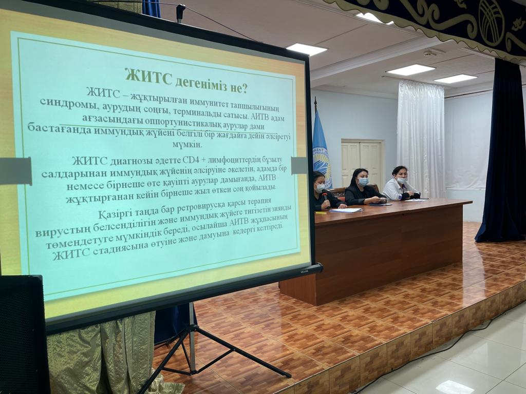 2021 жылдың 07 желтоқсанында Шымкент қаласы «Жастар ресурстық орталығы» КММ-нің Аутрич, NEET және жас отбасылармен жұмыс бөлімінің ұйымдастыруымен «АИТВ/ЖИТС-тың және нашақорлықтың алдын алу» бойынша түсіндірме жұмыстары өтті. Кездесуге: «ЖИТС – тің алдын алу және оған қарсы күрес жөніндегі орталық» маманы Назира Жургенбаева қатысты.