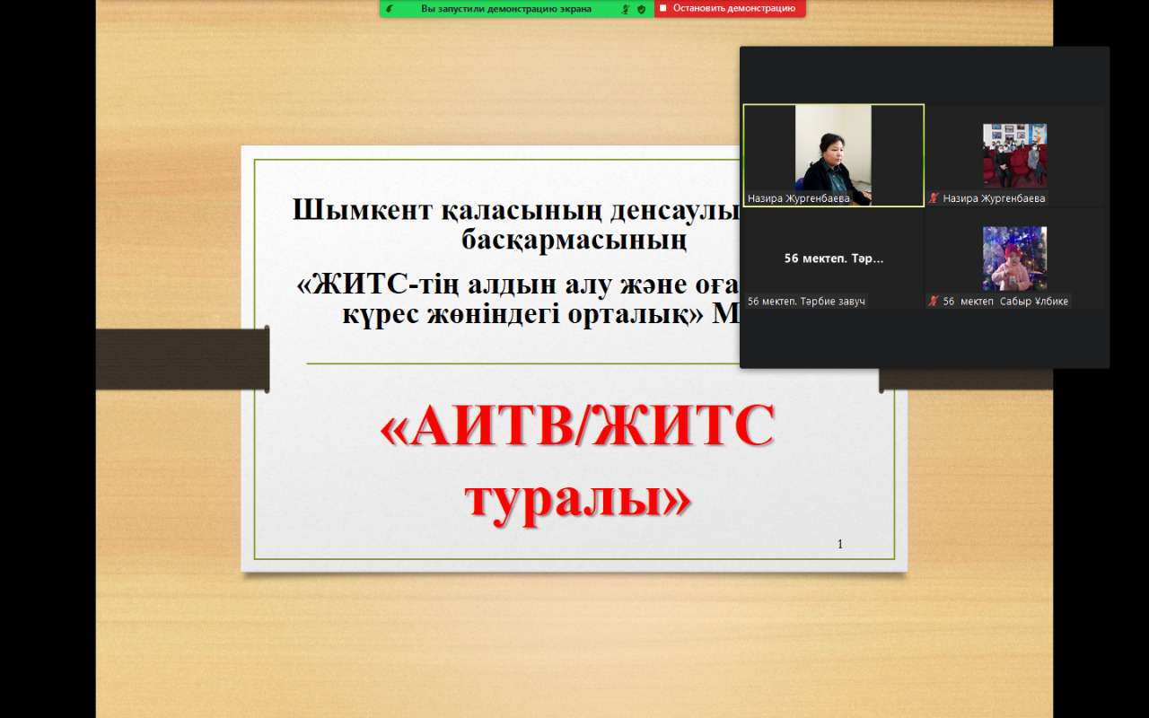 2022 жылы 20 қаңтар күні ЖИТС-тің алдын алу және оған қарсы күрес жөніндегі орталығының маманы №56 жалпы орта мектеп оқушыларына АИТВ/ЖИТС, нашақорлық туралы ақпаратты бере отырып, салауатты өмір салтын ұстану бойынша түсіндірме жұмыстарын жүргізді. Іс-шара барысында тыңдаушылар интерактивті сауалнама сұрақтарына жауап беріп, бейнероликтерді тамашалады. Қазіргі таңдағы өзекті мәселелер қозғалып, жастардың ұсыныс пікірлері тыңдалды.