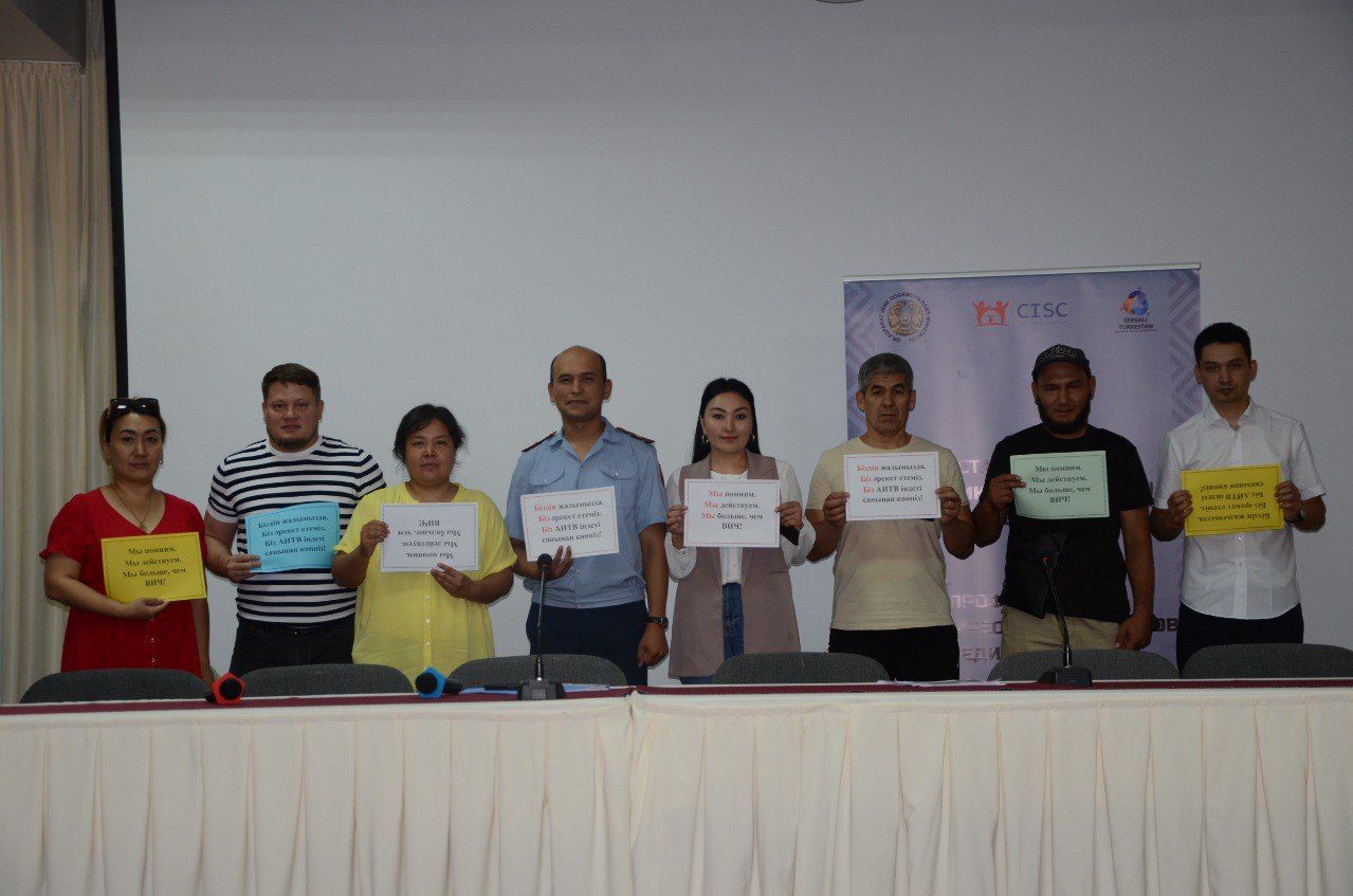 Аталмыш кездесу Шымкент қаласының Полиция департаменті тарапынан Есірткі қылмысына қарсы іс-қимыл басқармасының  жедел уәкілі полиция майоры Карбеков, «Әділдік жолы» РҚБ Шымкент қаласындағы филиалының  басшысы Кесебаева Айжан, Шымкент адалдық алаңы жобалық кеңесі басшысы Садибеков Бижан, Серғали-Түркістан РҚБ, жоба үйлестірушісі Абуталиев Ержан, ЖИТС-тің алдын алу және оған қарсы күрес жөніндегі орталық маманы Жүргенбаева Назира, ШЖҚ Психикалық денсаулық орталығының нарколог дәрігері  Одман Меруерт, Шымкент қаласының №3 жоғары спорт шеберлігі мектебінің басшысының орынбасары Аитов Руслан, №3 жоғары спорт шеберлігі мектебінің аға жаттықтырушысы халықаралық дәрежедегі спорт шебері Садыков Бахтияр, №3 жоғары спорт шеберлігі мектебінің спортшысы, жекпе-жектен қалалық облыстық және республикалық жарыстардың жеңімпазы,жекпе-жектен Азия чемпионы Имамов Азиз және Жоғары медицина колледжі студенттерінің қатысуымен өтті.