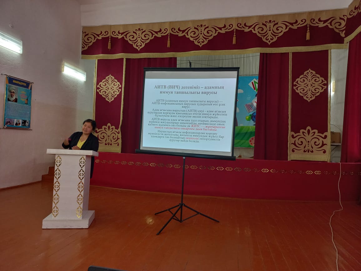 2022 жылы 06 маусым күні ЖИТС-тің алдын алу және оған қарсы күрес жөніндегі орталығының маманы N116 мектебінде 10 - сынып қыздары және ұл ұл балдарына түсіндірме жұмыстарын жүргізіп, «АИТВ/ЖИТС-тің алдын – алуы» атты баяндамасын жасады.