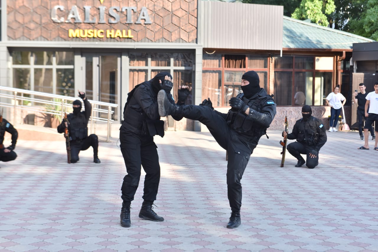 Шара барысында Шымкент қалалық Полиция департаментінің Патрульдік полиция полкінің қызметкерлері ән шырқап, Жылдам қимылдайтын арнайы жасақ өздерінің қызметтік іс-әрекеттерін паш етті. Сонымен қатар, Департаменттің Кинологиялық қызмет орталығының мамандары қызметтік иттердің жұмысымен таныстырды.