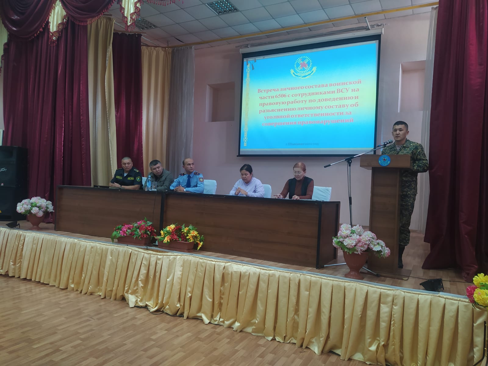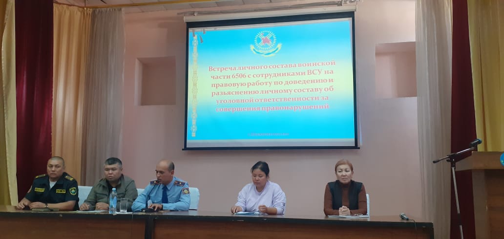 Ұлттық ұлан №6506 әскери бөлімінің қызметкерлері мен сарбаздары арасында құқық бұзушылықтың, нашақорлықтың және АИТВ/ЖИТС–тің алдын алу бағытында арнайы мамандармен дәріс өткізілді.