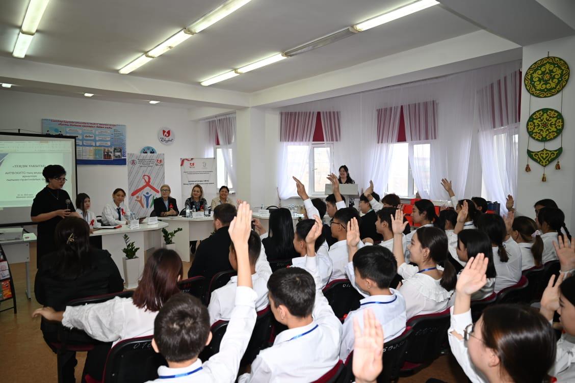 Саттар Ерубаев атындағы №24 ІТ мектеп-лицейі директоры Нысанбаева Жанар Тастановна, «ЖИТС-тің алдын алу және оған қарсы күрес жөніндегі орталығы» профилактикалық жұмыстар бөлімінің меңгерушісі - Медетова Айнұр Жұмабаевна, мұғалімі Жургенбаева Назира Матышевна, «Психикалық денсаулық орталығының» психиатр наркологі - Баймурунова Раушан Асановна, Қоғамдық денсаулық сақтау институтытың маманы Ильясова Майра Ералиевна, үйлестірушісі Молдабаева Айжан Мәдіханқызы, «Жастар ресурстық орталығы» КММ-нің Аутрич және NEET жастармен жұмыс бөлімінің инспекторы Қалмурзаева Айжарқын Абдухалыққызы,№3 жоғары спорт шеберлігі мектеп басшысының орынбасары Аитов Руслан Шавкатович, Мектеп ұстаздары, Медицина қызметкерлері, мектеп оқушылары мен БАҚ өкілдері қатысты.