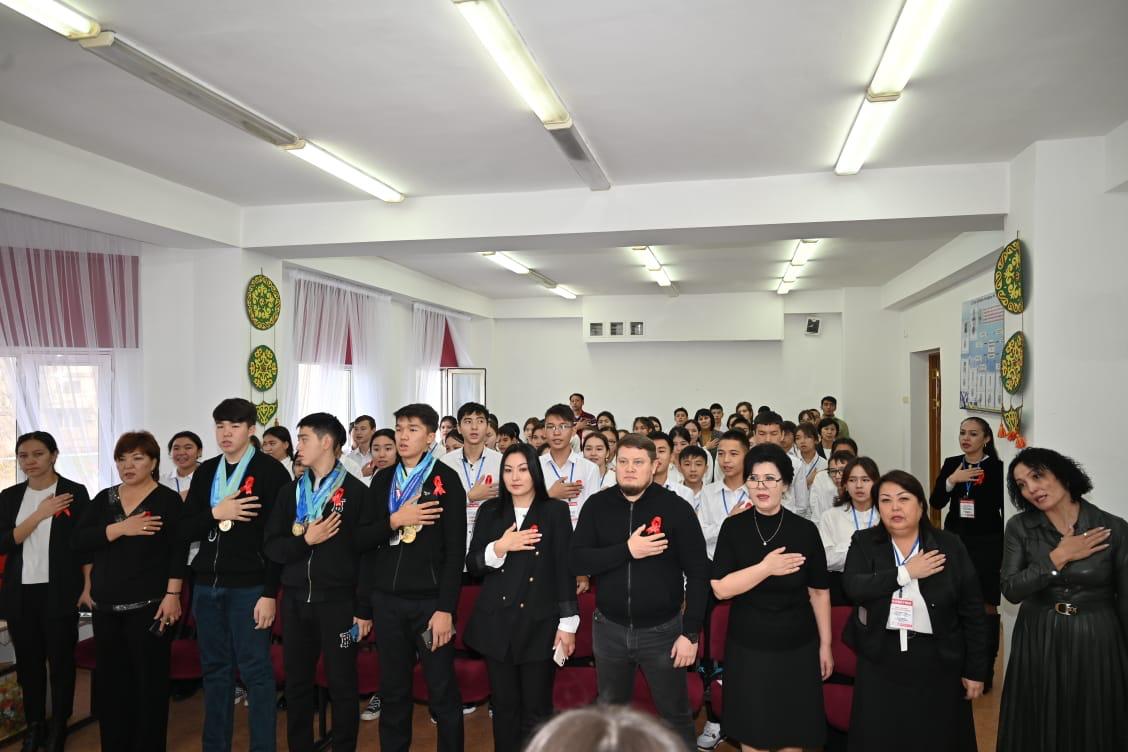Мектеп ғимаратының бірінші қабатында оқушы жастардың салауатты өмір салтын насихаттау және АИТВ/ЖИТС-тің алдын алуға байланысты суреттер көрмесі ұсынылды. Сонымен қатар бейінді мамандар медицина қызметкерлері, спортшылар, мектеп оқушылары тақырыпқа сәйкес баяндама жасады.