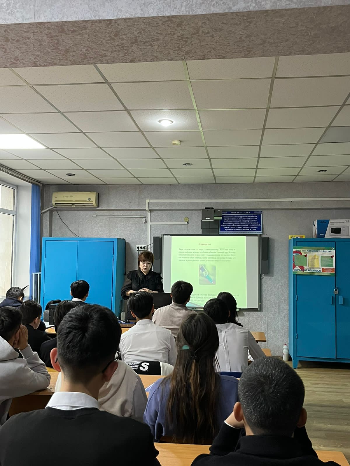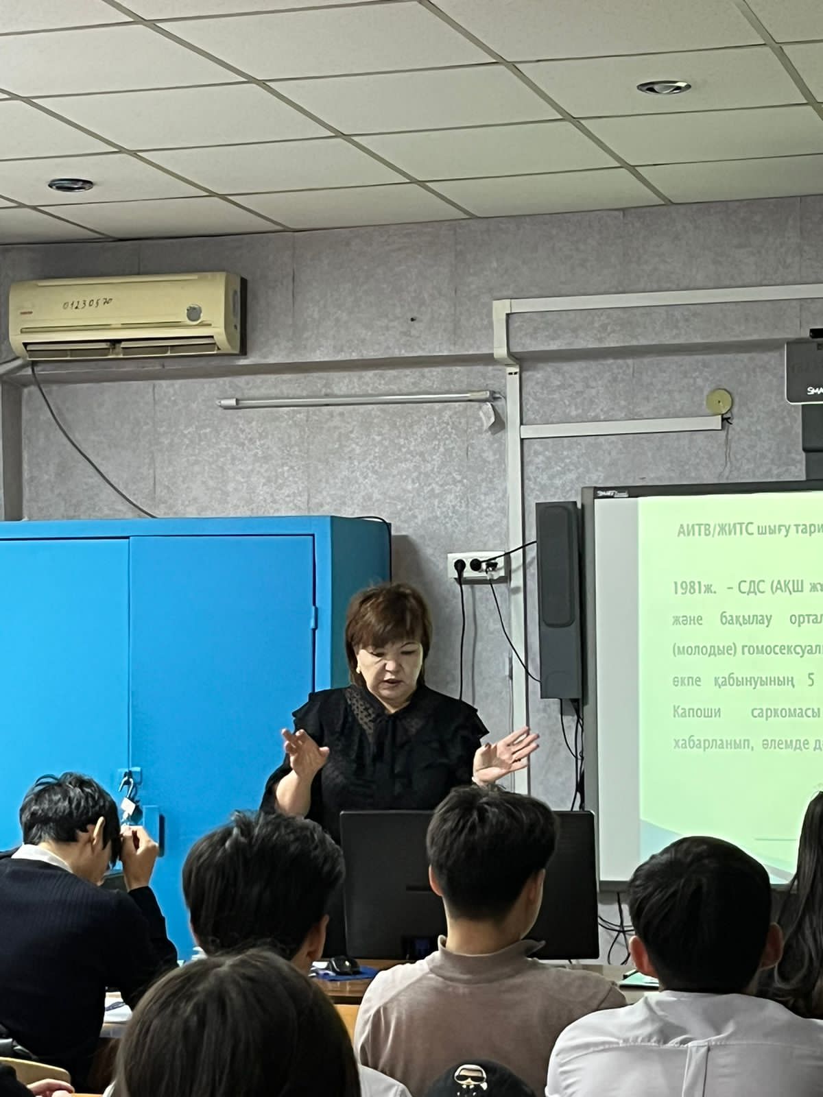 09.02.2023ж. Шымкент қаласының ДСБ «ЖИТС-тің алдын алу және оған қарсы күрес жөніндегі орталық» МКҚК-нің профилактикалық жұмыстар бөлімінің эпидемиолог дәрігері Ф. Абдиева, Шымкент қаласының «Политехникалық» колледжінің студенттері арасында «АИТВ инфекциясы туралы түсінік. Шығу тарихы. АИТВ инфекциясының берілу және алдын-алу жолдары. АИТВ инфекциясына шалдыққан адамдардың құқығын қорғау (стигматизация мен кемсітушілікті алдын алу) жайында» тақырыбында түсіндірме жұмыстары презентация түрінде баяндалды. Семинарға 26 студент және 2 мұғалім қатысты.