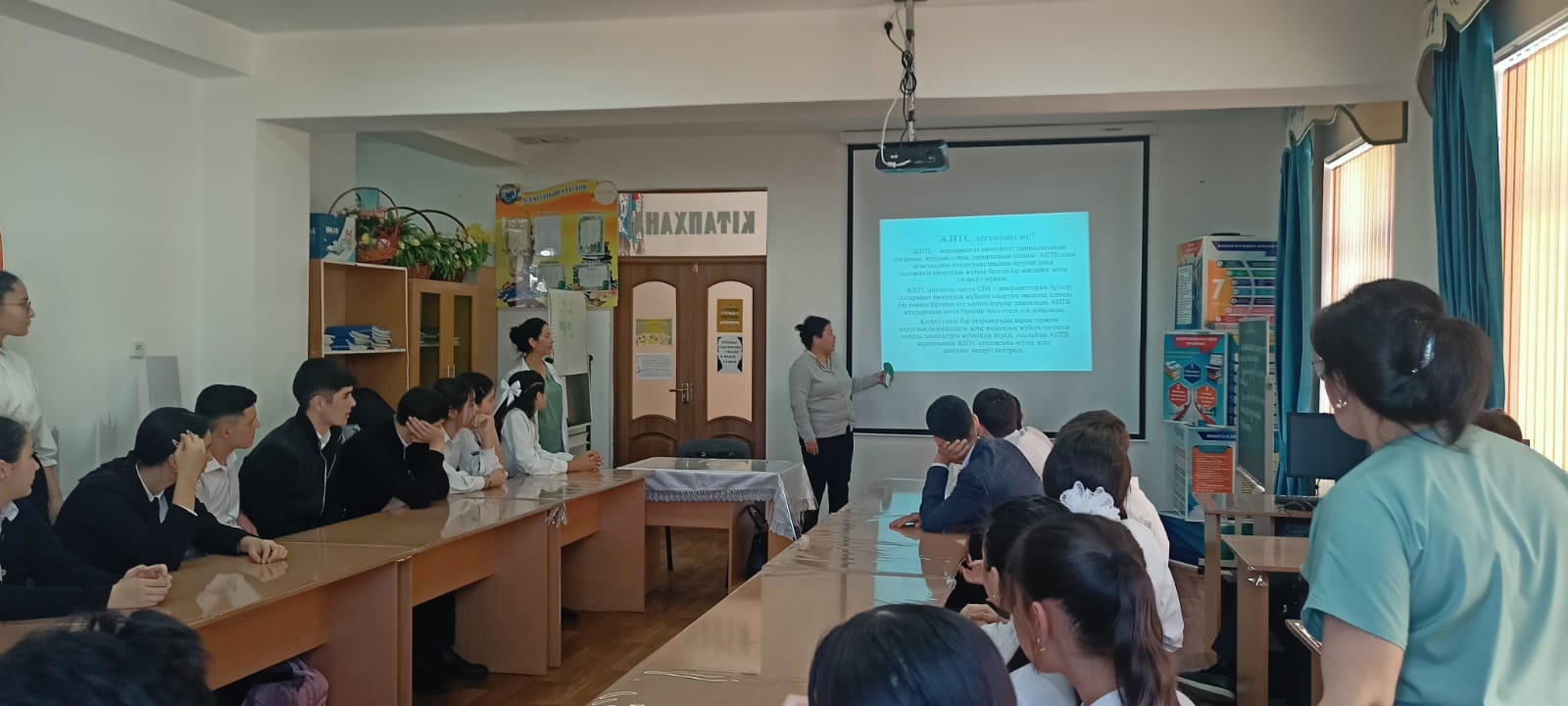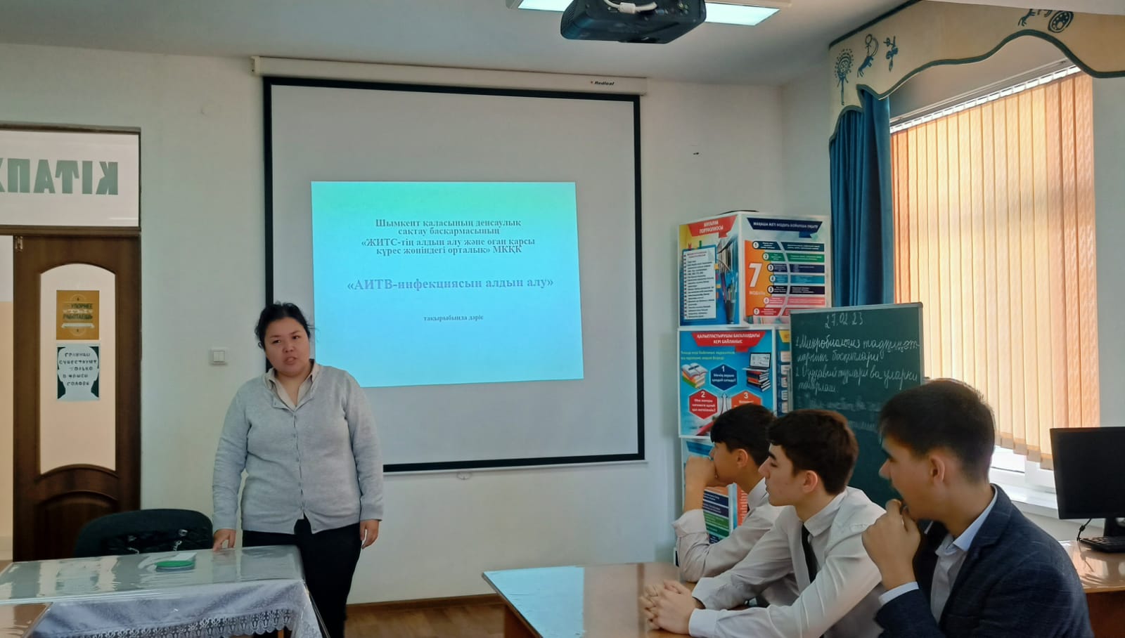 Шымкент қаласының ДСБ «ЖИТС-тің алдын алу және оған қарсы күрес жөніндегі орталық» МКҚК-нің Білім басқармасымен бірлескен жоспары бойынша, «АИТВ инфекциясы жайлы не білесің?» тақырыбында N104 мектеп оқушыларына дәріс өтті.