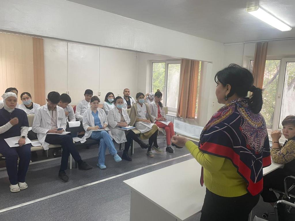 ЖИТС орталығының мамандары У.Байдилдаева және Ф.Абдиева Студенттік емханасында әдістемелік-ұйымдастырушылық көмек көрсетіп, семинар өтті. Семинарда «95-95-95» стратегиясы, соның ішінде «95% адамдар өз АИТВ-статусын білуі тиіс» индикаторына қол жеткізу мақсатында, АИТВ-инфекциясына өз еркімен, эпидемиологиялық және клиникалық көрсетілімдер бойынша тексерілу жайында түсіндіру жұмыстары жүргізілді.