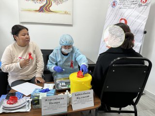 Іс-шара барысында АИТВ-жұқпасына жедел-тест әдісімен тексерілу жұмыстары ұйымдастырылып, тестіге дейін және тестіден кейінгі кеңестер берілді.