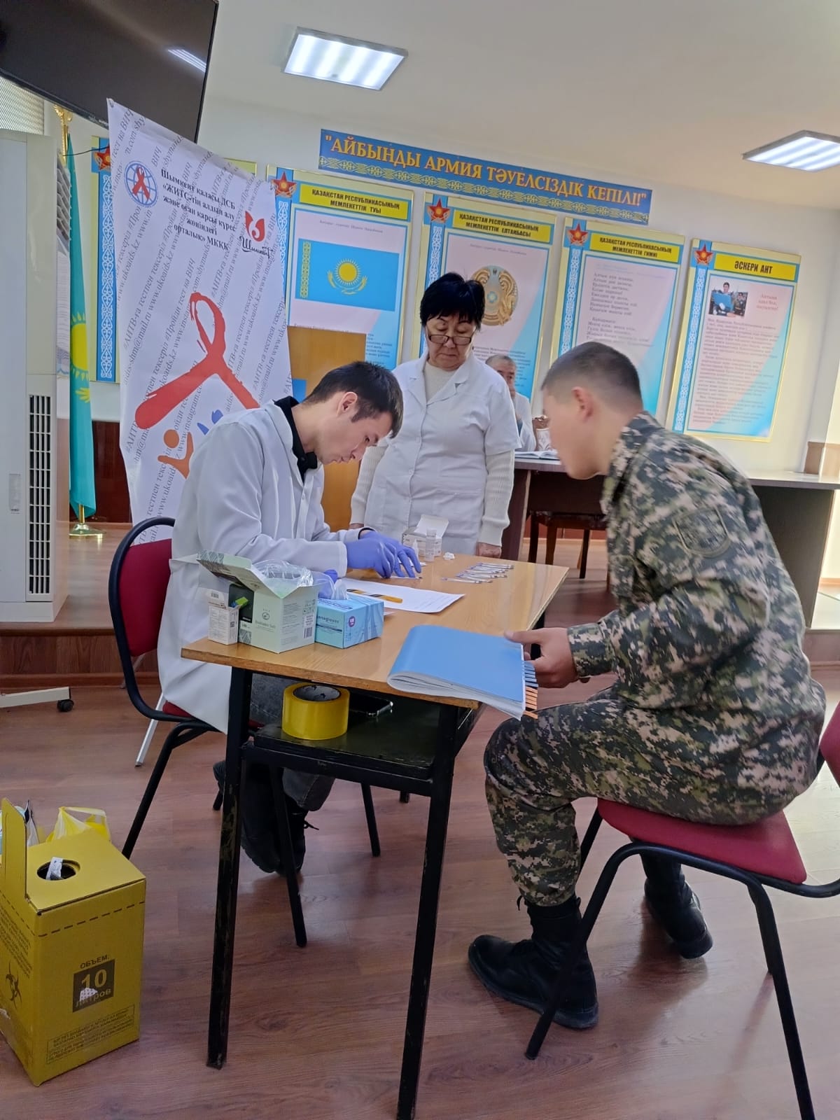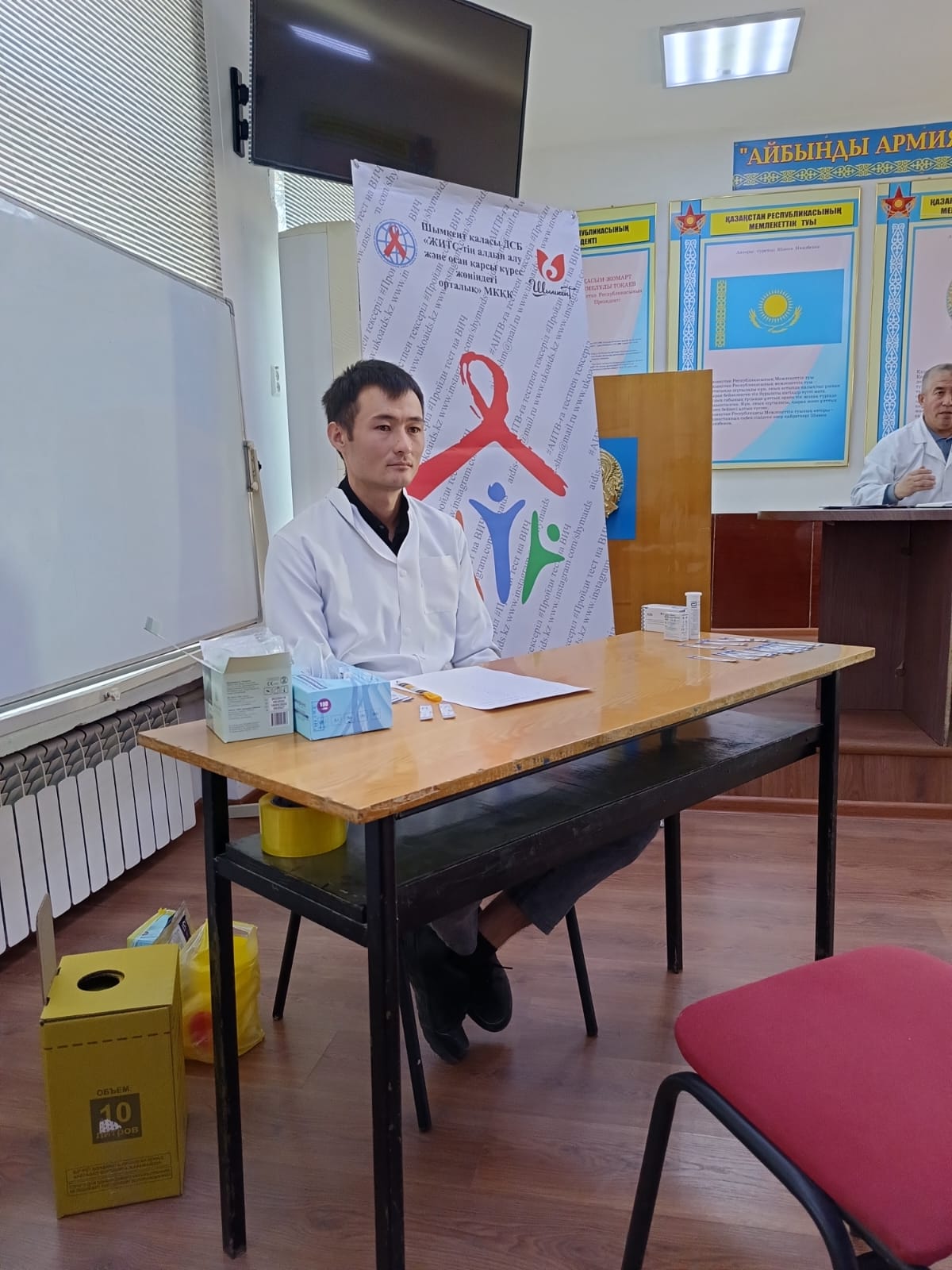 Іс-шара барысында АИТВ-жұқпасына жедел-тест әдісімен тексерілу жұмыстары ұйымдастырылып, тестіге дейінгі және тестіден кейінгі кеңестер берілді.