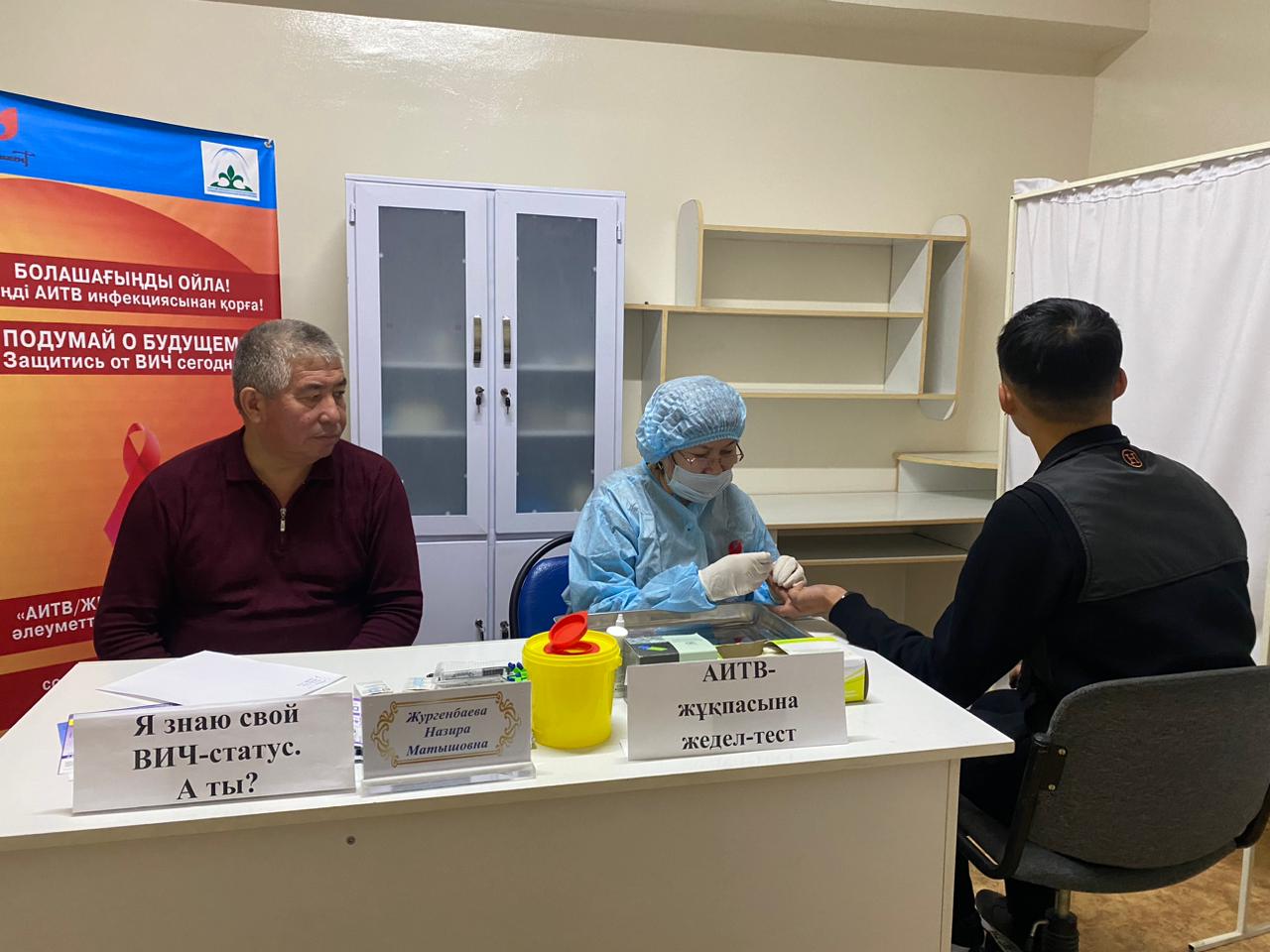 ЖИТС орталығының мамандары АИТВ-жұқпасына өз еркімен жедел-тест әдісімен тексерілу жұмыстарын ұйымдастырып, тестіге дейін және тестіден кейінгі кеңестер берді.
