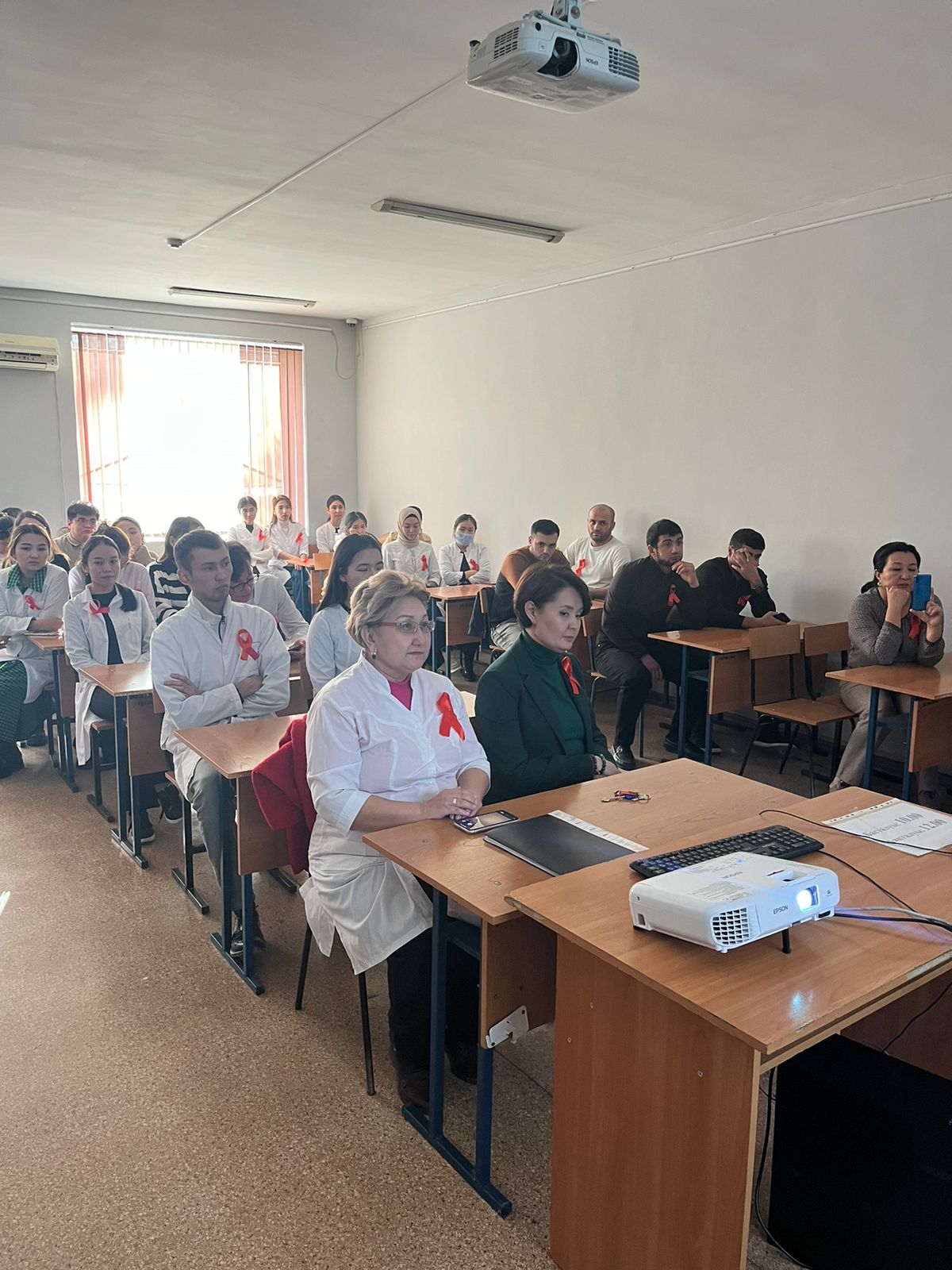 Іс-шара барысында АИТВ-инфекциясының эпидемиологиялық ахуалы, диагностикалау мен емдеудегі көрсеткіштер мен жетістіктер, атқарылып жатқан профилактикалық шаралар талқыланды. 60 студент, болашақ дәрігерлер қатысты.