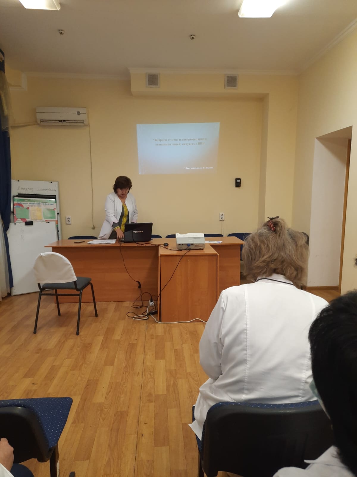 Шымкент қаласының ДСБ «ЖИТС-тің алдын алу және оған қарсы күрес жөніндегі орталық» МКҚК-да стигма мен дискриминация және медициналық этика, деонтология жайында семинар өткізілді. Іс-шараның өтілу мақсаты стигманың қалыптасу процесін түсіну: таңба салу, тіл тигізу, стереотипке, кемсітуге және қанауға ұшырату. Өз стереотиптерінің және көзқарастарының халықтың осал (инемен есірткі тұтынушылар, секс қызметшілері, ерлермен жыныстық қатынасқа түсетін ер адамдар) топтарымен жұмыс істеу тәжірибесіне ықпал ететінін талдау және оны түсіне білу, стигма мен дискриминацияны алдын алу.