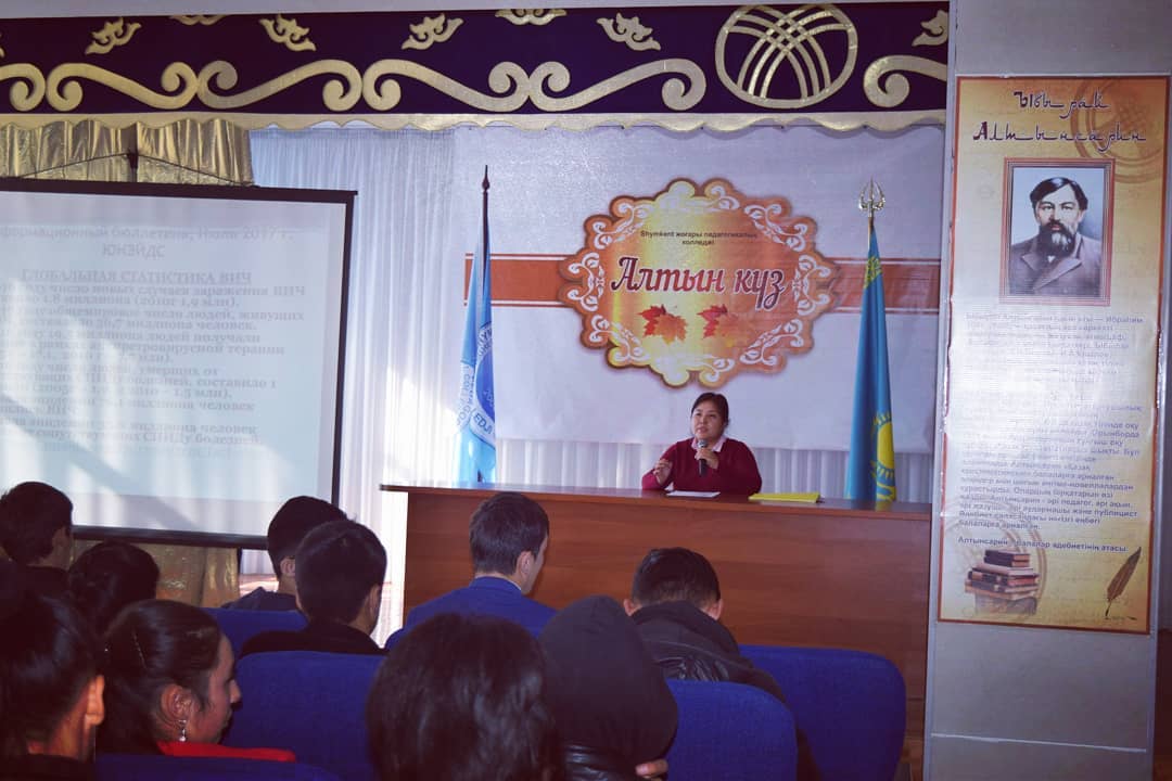 2018 жылдың 25 қазанында Шымкент жоғары педагогикалық колледж мәжіліс залында студенттерге дәріс өтіп, тыңдаушылар интерактивті ойындарға қатысып, сауалнама сұрақтарына жауап беріп, бейнероликтерді тамашалады. Алдын алу бөлімінің маманы АИТВ/ЖИТС тарихына қысқаша шолу жасап, АИТВ - инфекцияның әлем және Қазақстан бойынша таралуы, эпидемиологиялық жағдай статистикасымен таныстырды. Тыңдаушыларда АИТВ/ЖИТС туралы негізгі түсінік қалыптасып, (этиология, патогенез, клиника), АРТ мақсаты мен пациенттердің құқықтары жайлы білім алды. Жастарды АИТВ алдын алу шаралары туралы білуге, өз денсаулықтарына жауапты болуға, салауатты өмір салтын ұстануға, психикалық денсаулығын сақтауға, зиянды әдеттерден аулақ болуға және үнемі анализ тапсыру арқылы АИТВ статусын білуге шақырды.