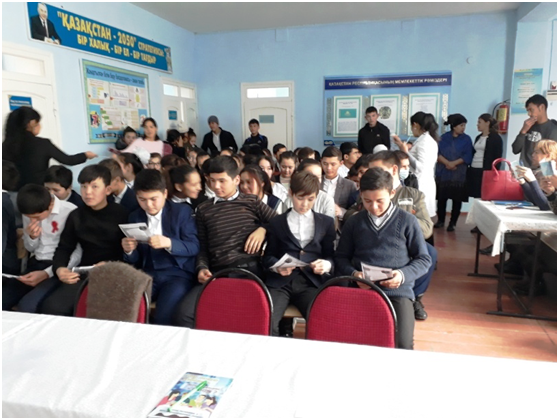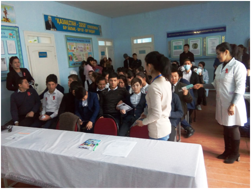 Дүниежүзілік ЖИТС-ке қарсы күрес күні аясында 2018 жылдың 28-ші қарашасында ЖИТС орталығының Түркістан қаласы №2 бөлімше дәрігер эпидемиологы Х.Сыздыкова «АИТВ/ЖИТС-тің жұғу жолдары,алдын алу шаралары. Өз мәртебеңді біл» тақырыбында Әмір Темір жалпы орта мектебі оқушылары арасында семинар өткізді.