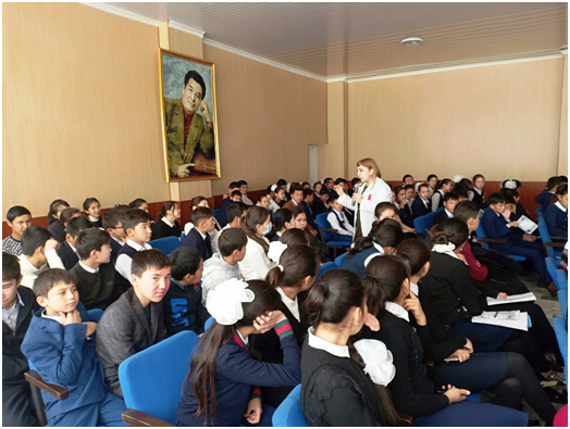 Сонымен қатар, кездесуге оқушылар тарапынан мамандарға сауалдарын қойып, жауап алды. Оқушыларға ақпараттық білім беру материалдары , слайд, бейнефильмдер көрсетілді. Оқушылар тарапынан флешмоб көрсетілді.