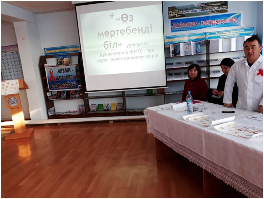 іс –шараның мақсаты- АИТВ/ЖИТС инфекциясының жұғу жолдары, алдын алу мәселесі бойынша ақпараттандыру деңгейін арттыру сондай-ақ АИТВ мәртебесін және тестілеу қажеттілігін білудің маңыздылығына аудару.