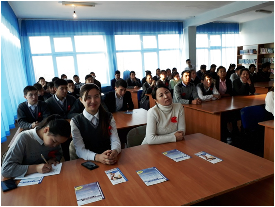 Қатысушыларға ақпараттық білім беру материалдары , слайд, бейнефильмдер көрсетілді, жастарға арналған буклеттер мен үнпарақтар таратылды.