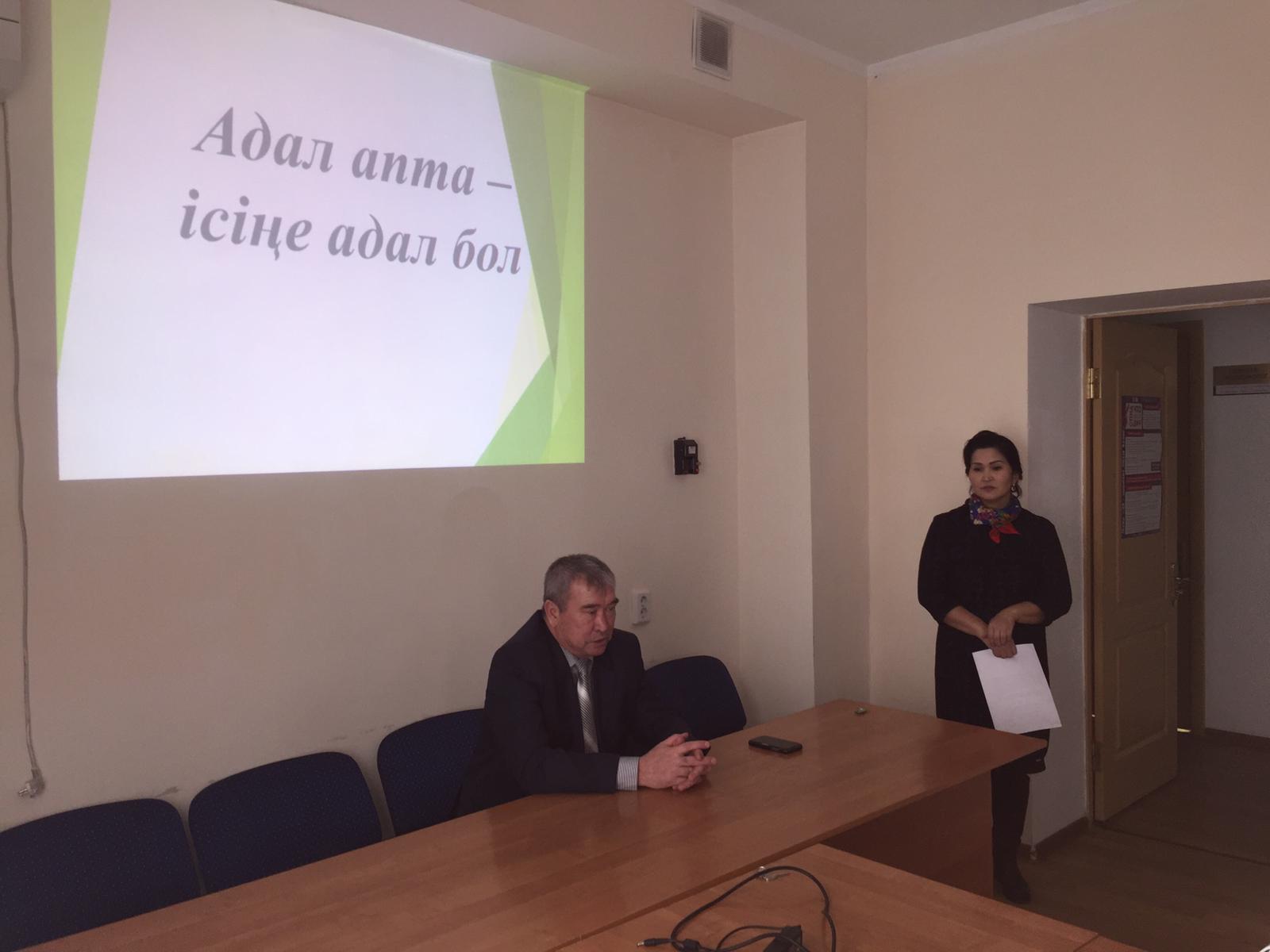 Жоспарға сәйкес, қаланың барлық аудандары мен мемлекеттік мекемелерінде «Адал апта – ісіңе адал бол!» жемқорлыққа қарсы акция өткізілетін болады.