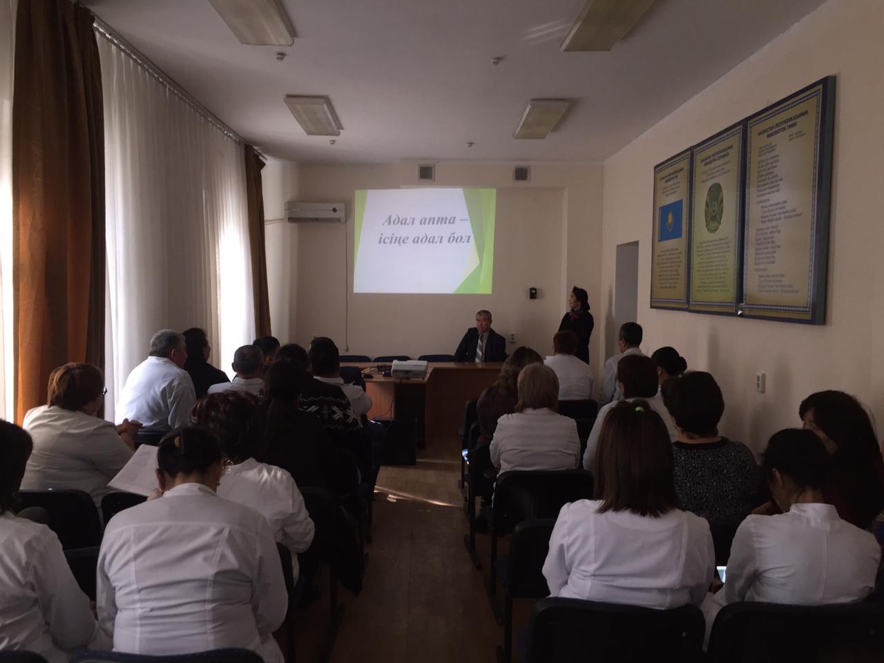 2018 жылдың 12 желтоқсан күні Шымкент қаласының денсаулық сақтау басқармасының «ЖИТС-тің алдың алу және оған күрес жөніндегі орталық» мемлекеттік коммуналдық қазыналық кәсіпорны «Адал апта – ісіңе адал бол!» жемқорлыққа қарсы акциясын өткізді