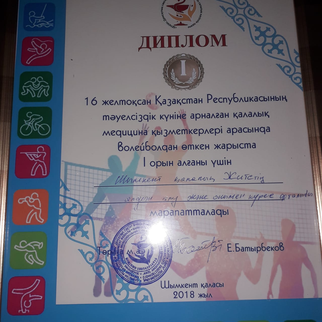 ҚР Тәуелсіздік күніне орай «SENIM» Денсаулық сақтау жүйесі жұмыскерлерінің салалық кәсіптік одағының ұйымдастыруымен медицина қызметкерлерінің арасында волейболдан қалалық Турнир өткізілді. Спартакиаданың өткізілу мақсаты: салауатты өмір салтын насихаттау, ҚР медициналық ұйымдарында спорттық-бұқаралық және сауықтыру жұмыстарын жетілдіру, қызметкерлердің денсаулығын нығайту, бұқаралық спортты насихаттау және дамыту. Турнир №24С.Тәжібаева атындағы орта мектепте 2018 жылдың 15 желтоқсанда өткізілді. Турнирге 20 медициналық мекеме қызметкерлері қатысып, бірінші орынды ЖИТС орталығының қызметкерлері иеленді.