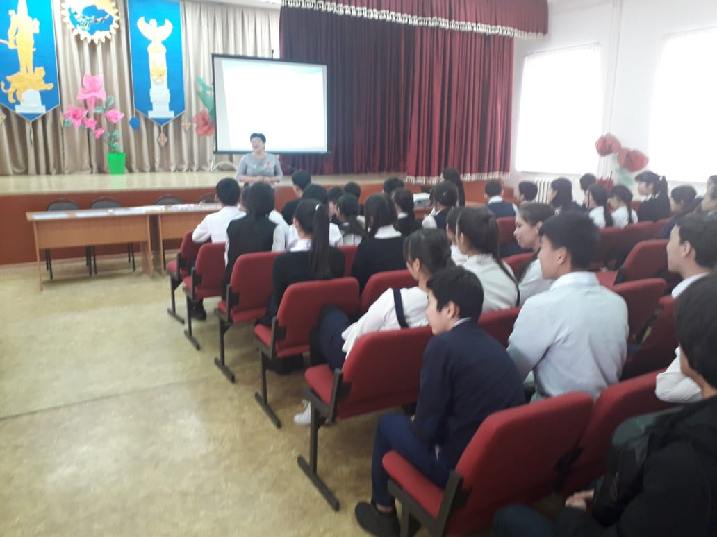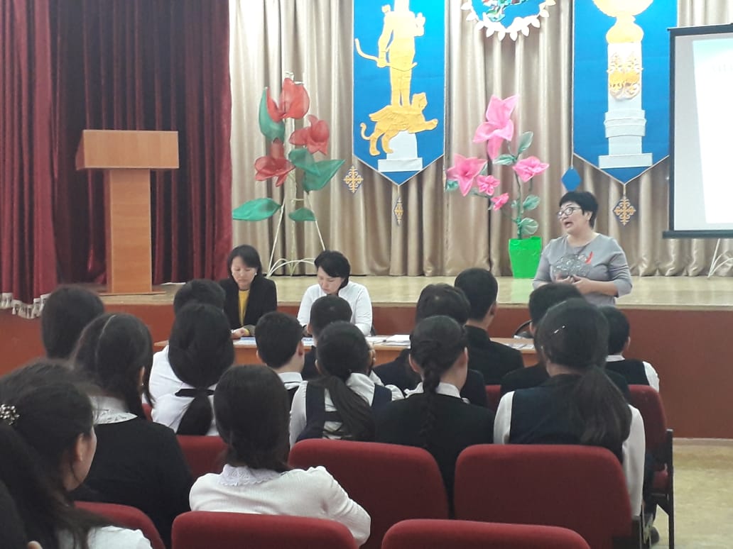 Интерактивті түрде өткен дәріс барысында оқушылар мен мұғалімдерге АИТВ-ЖИТС туралы негізгі түсінік берілді. АИТВ-ның әлем және Қазақстан бойынша таралуы, эпидемиологиялық жағдайы, алдын алу жолдары, Анти Ретровирусты терапияның мақсаты туралы айтылды.АИТВ жұқтырған немесе ЖИТС –пен ауыратын адамдарды әлеуметтік қорғау. «Халық денсаулығы және денсаулық сақтау жүйесі туралы» ҚР Кодексінің 19 тарауымен таныстырылды. Сауалнамалар жүргізіліп,бейне фильм көрсетіліп, буклеттер таратылды.