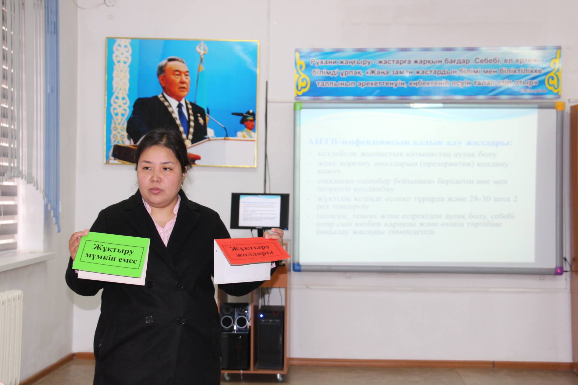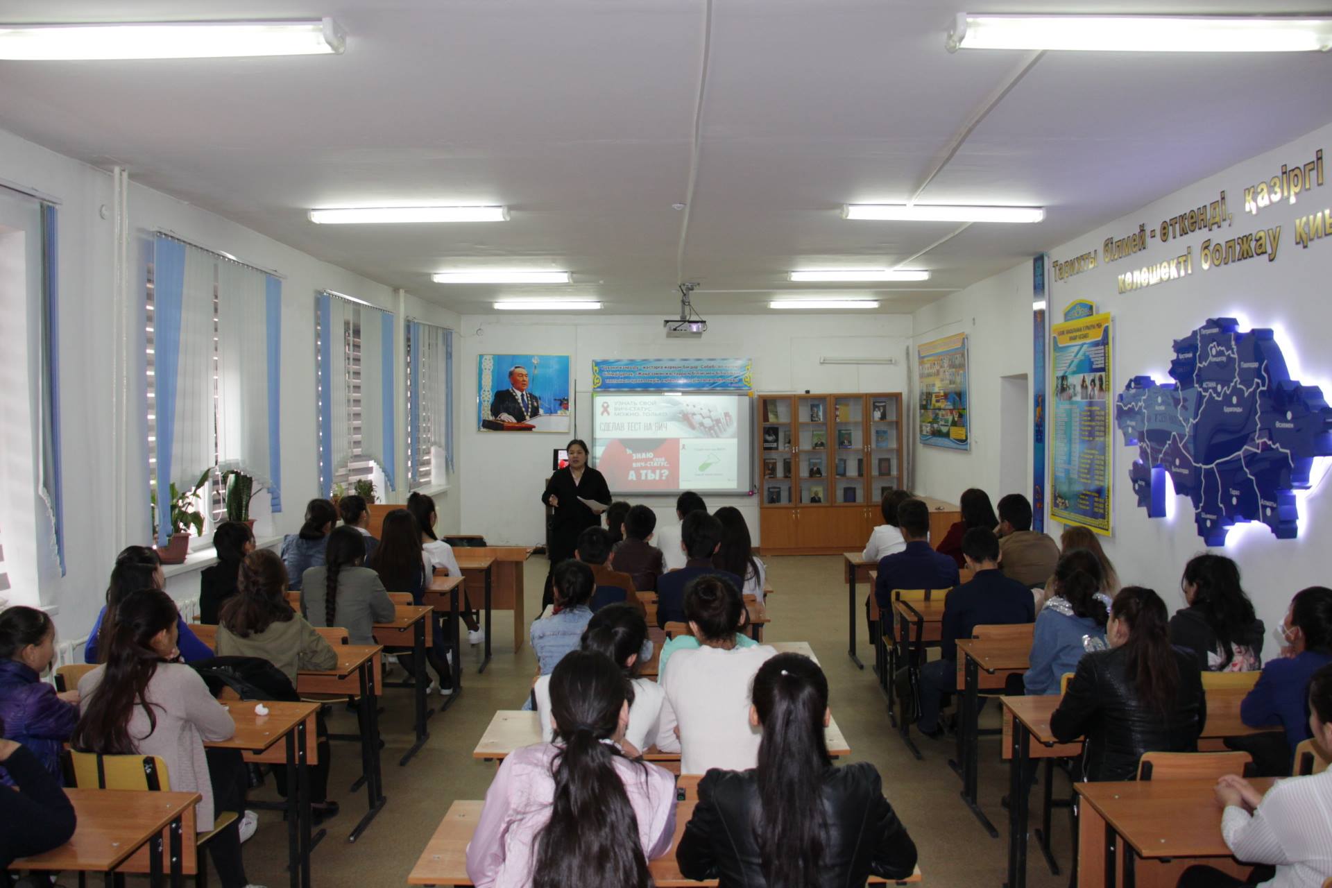 2019 жылы 3 сәуір күні Шымкент қаласы отбасы, балалар және жастар жөніндегі басқармасының Жастар ресурстық орталығы мен ЖИТС-тің алдын алу және оған қарсы күрес жөніндегі орталығының мамандары «Парасат» колледжінің студенттеріне АИТВ/ЖИТС, нашақорлық туралы ақпаратты бере отырып, салауатты өмір салтын ұстану бойынша түсіндірме жұмыстарын жүргізді.