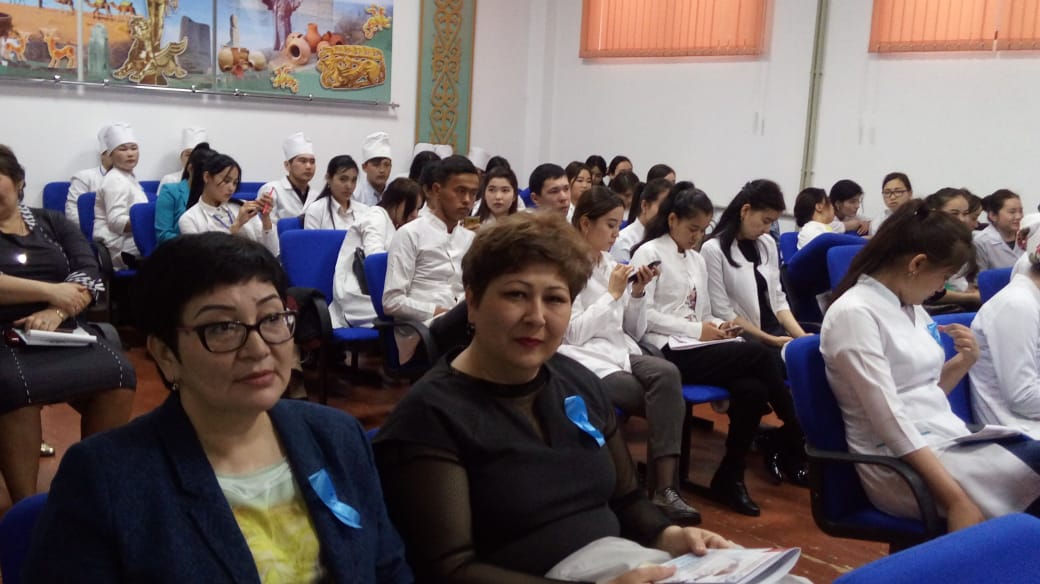 Іс -шара барысында ЖИТС-тің алдын алу және оған қарсы күрес орталығының профилактикалық жұмыстар бөлімі меңгерушісі Ф.Абдиева студенттерге мен мұғалімдерге АИТВ/ЖИТС туралы негізгі түсінік берді. Сонымен қатар АИТВ/ЖИТС-тің әлем және Қазақстан бойынша эпидемиологиялық жағдайы, жұғу және алдын- алу жолдары туралы слайдпен көрсетіліп, айтылды.