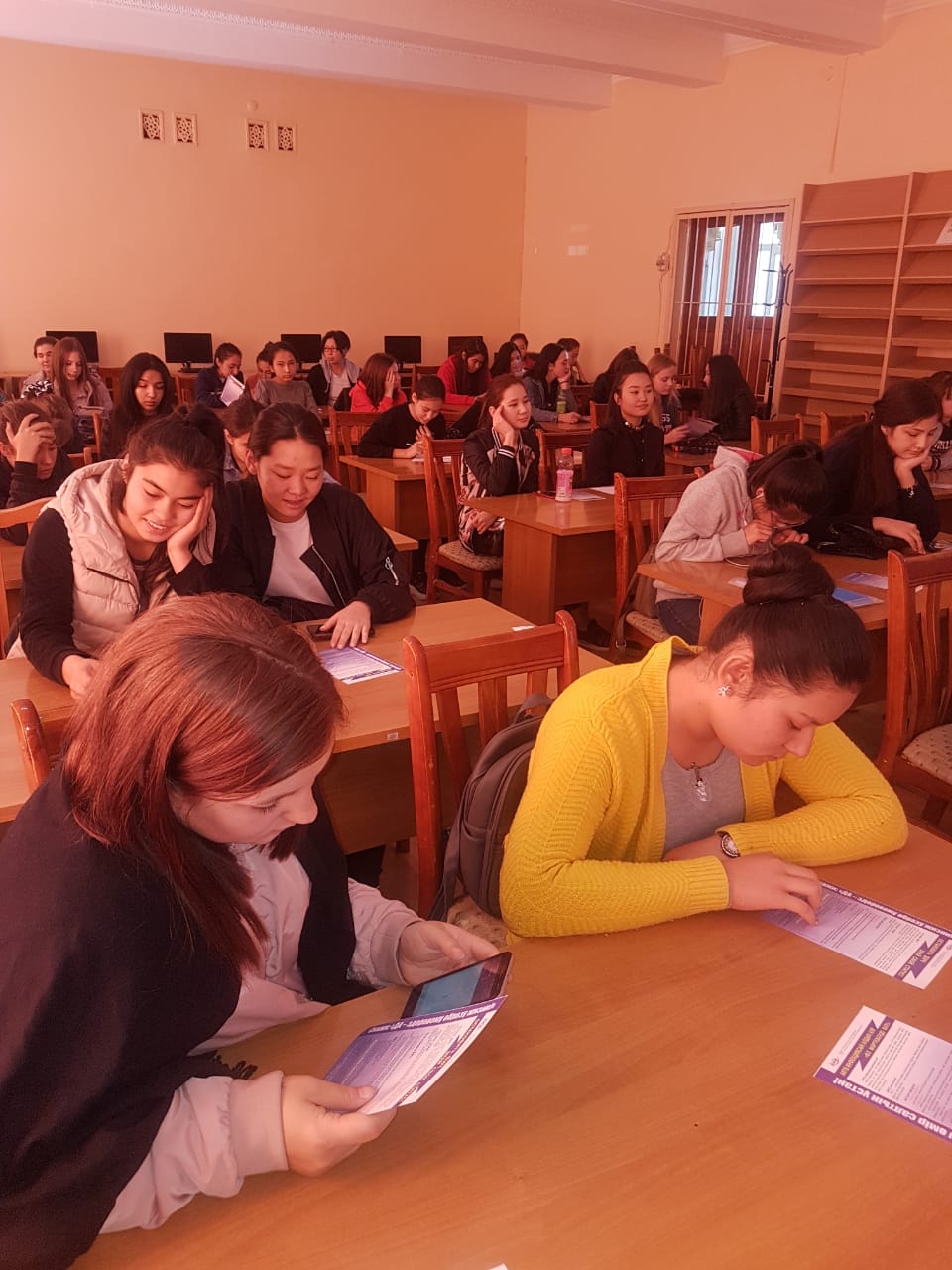 Іс-шара барысында Жастар ресурстық орталығының мамандары кәмелеттік жасқа толмағандардың арасында жыныстық қатынастың алдын алу және жоспарсыз жүктілікті болдырмау мақсатында бейнероликтерді көрсетті. Студенттер АИТВ/ЖИТС туралы шынайы ақпарат ала отырып, қауіпсіз мінез-құлық дағдысына және АИТВ-мен өмір сүруші адамның құқықтарына құрмет көрсетуді үйренді.