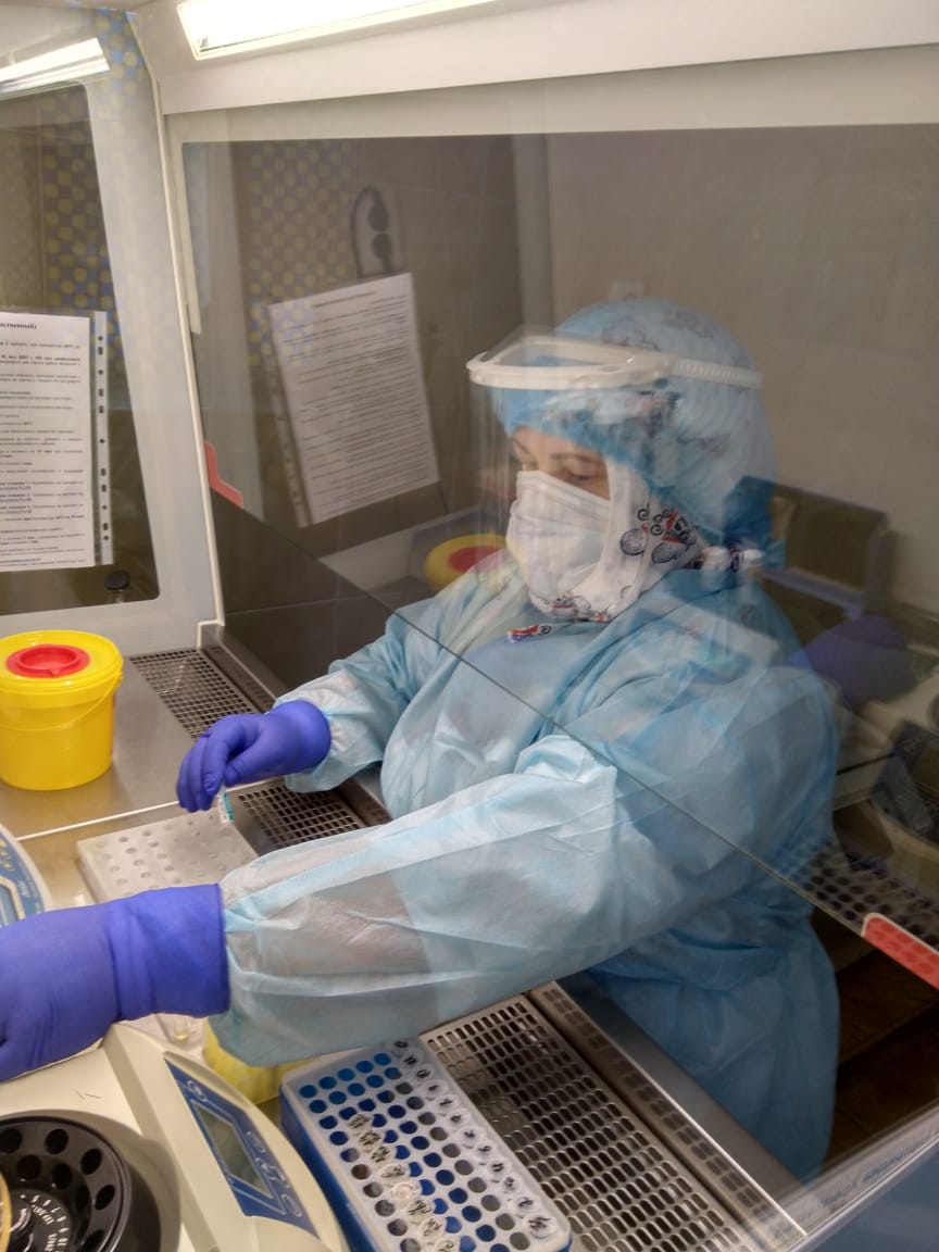 Шымкент қаласының денсаулық сақтау басқармасының «ЖИТС-тің алдын алу және оған қарсы күрес жөніндегі орталық» мемлекетттік коммуналдық қазыналық кәсіпорнының Шымкент қаласының денсаулық сақтау басқармасының 2020 жылғы 04 сәуірдегі № 104 «ШЖҚ «Қалалық диагностикалық орталық» МКК және «Қалалық жұқпалы аурулар ауруханасы» МКҚК базасында COVID-19 инфекциясына зертханалық зерттеу жүргізу туралы» бұйрығы негізінде орталықтың диагностикалық зертханасының ПТР (полимераздық тізбектік реакциясы) бөлімі КВИ тексеруге бейімдендіріліп, ұйымдастырылды. Эпидемиологиялық ахуалға байланысты, халыққа зертханалық қызметтер көрсетудің үздіксіздігін қамтамасыз ету үшін 2 кезеңдік (12 сағаттан) жұмыс ұйымдастырылды, аталған жұмысқа 8 қызметкер тартылды, оның ішінде 3 зертхана маманы, 3 зертханашы, 2 кіші медициналық персоналы. Мамандар проблеманың маңыздылығын түсінікпен қарап, аса жауапкершілікпен жұмысын атқаруда.