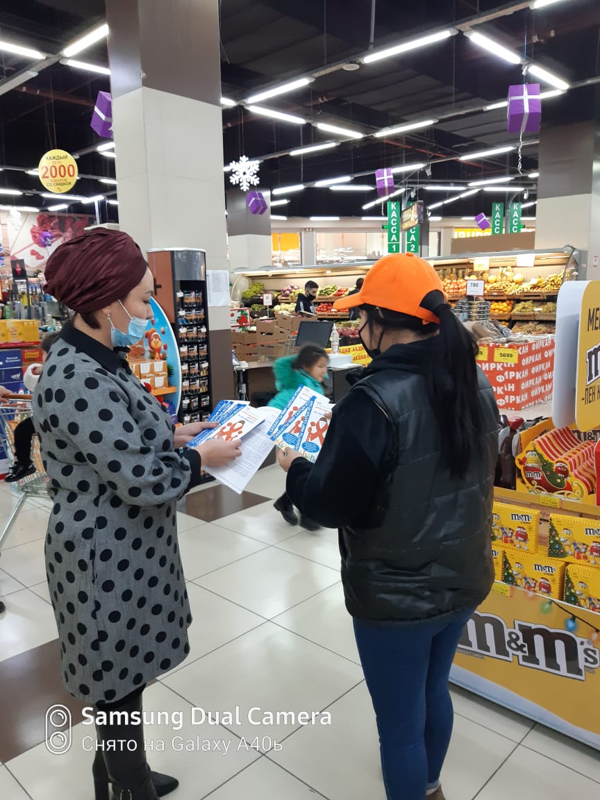 Шымкент қаласының «Фиркан» сауда желісінде «ЖИТС-тің алдын-алу және оған қарсы күрес жөніндегі орталық» мамандарының қатысуымен 1-желтоқсан «Дүниежүзілік ЖИТС-пен күрес күніне» орай «Жаһандық ынтымақтастық, ортақ жауапкершілік» тақырыбында науқан өткізілді. Іс-шара Қазақстан Республикасының Бас мемлекеттік санитариялық дәрігерінің қаулысына сай барлық қауіпсіздік (әлеуметтік қашықтық, бетперде, санитайзер, залалсыздандыру құралдары) шаралары сақтала отырып өткізілді. Науқан өткізу барысында сауда желісіне келген адамдар қамтылды. Дәрігер терапевт А.Медетова, дәрігер эпидемиолог көмекшісі Л.Джанабаева АИТВ-инфекциясының алдын-алу, АИТВ жұқтырған адамдарға қолдау көрсету және оларға түсіністікпен қарау бойынша түсіндіру жұмыстарын жүргізді. АИТВ-инфекциясының алдын-алу мақсатында ақпараттық, танымдық материалдар таратты.