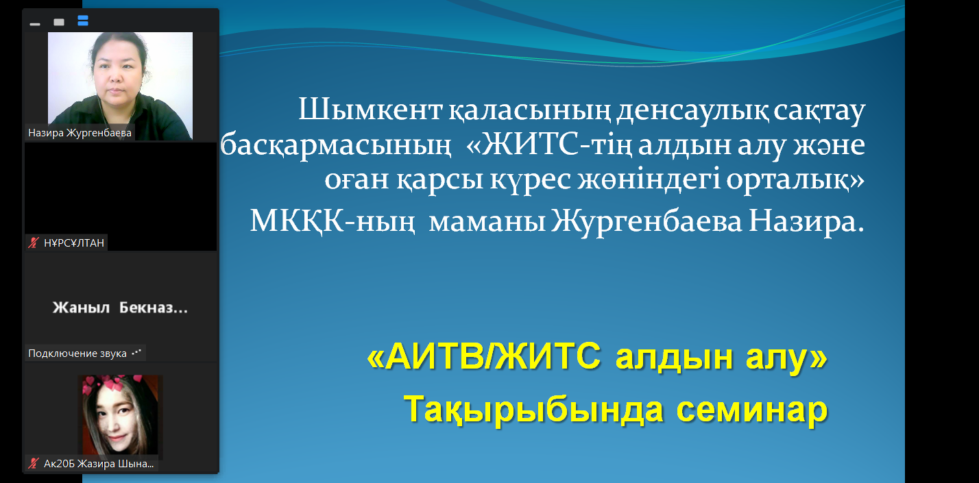 Халықаралық ЖИТС-тен қайтыс болғандарды еске алу күніне орай «Жоғары медицина колледж» студенттеріне арналған онлайн семинары барысында, ЖИТС-тің алдын - алу және оған қарсы күрес жөніндегі орталығының мұғалімі және Шымкент қаласының ішкі саясат және жастар істері жөніндегі басқармасының «Жастар ресурстық орталығының» маманы қатысып, «АИТВ/ЖИТС-тің алдын – алу» атты баяндамаларын жасады. Іс-шара барысында студенттер АИТВ/ЖИТС туралы шынайы ақпарат ала отырып, АИТВ-мен өмір сүруші адамның құқықтарына құрмет көрсетуді үйренді.