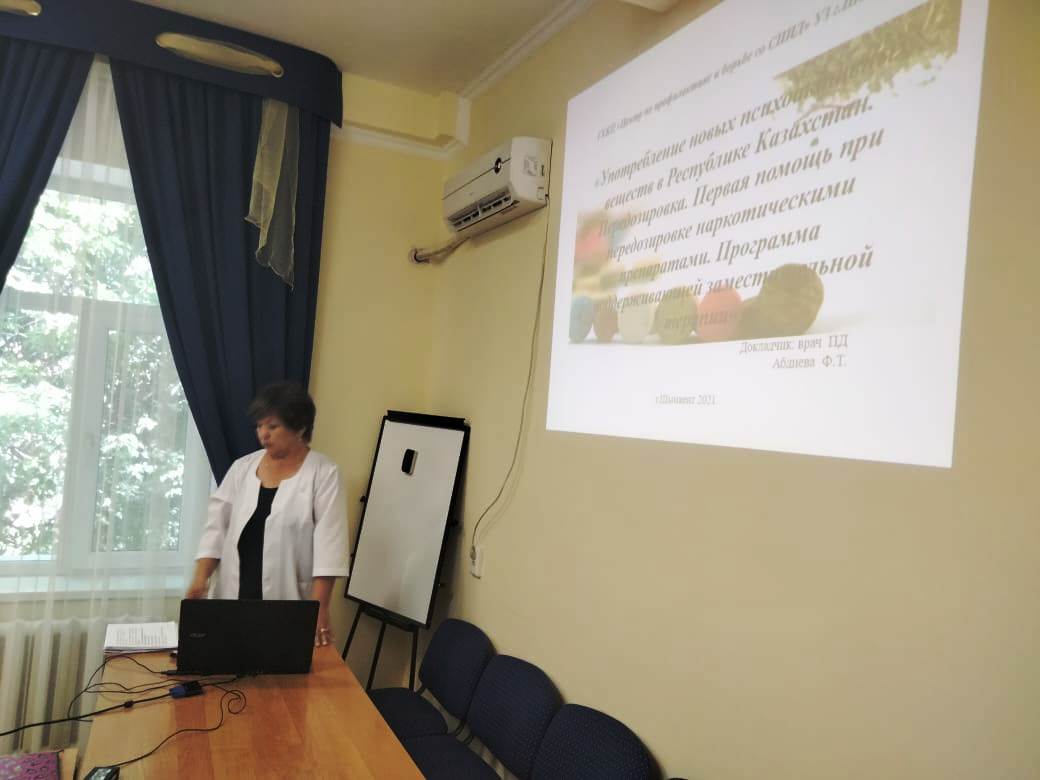 2021 жылдың 15 маусым күні «Балаларды ЖИТС –тен қорғау» Қоғамдық Қайырымдылық Қоры Үкіметтік емес ұйымының аутрич және әлеуметтік қызметкерлерімен «26 маусым Дүниежүзілік нашақорлықпен күрес күніне» орай «Жаңа психоактивті заттар. Оларды мөлшерден тыс қолданудан болған улануды алдын – алу мен алғашқы көмек көрсету» тақырыбында семинар өткізілді. Іс-шараны Шымкент қаласы ДСБ ЖИТС-тің алдын-алу және оған қарсы күрес жөніндегі орталық мамандары ұйымдастырды. Қатысушылар іс-шара барысында АИТВ/ЖИТС алдын-алуы және Қазақстан Республикасындағы жаңа психоактивті заттар, олардан болатын қиыншылықтар туралы ақпарат алды. Семинар барысында қатысушулардың әр түрлі сұрақтары талқыланып, жауап берілді.