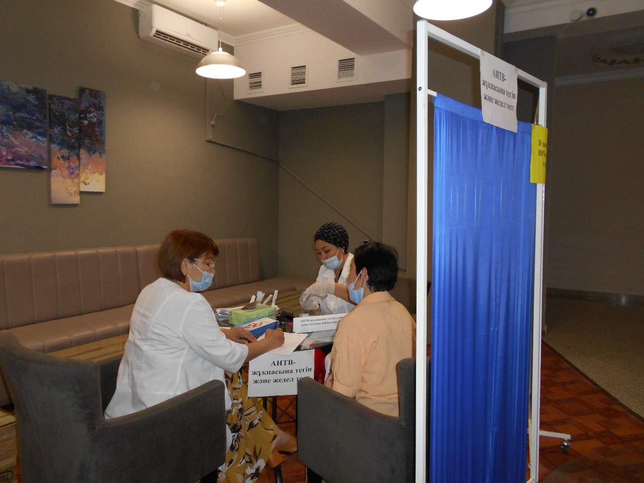 Науқан аясында ЖИТС орталығының қызметкерлері келушілерді АИТВ-жұқпасына жедел-тест арқылы тексеріп, тестіге дейін және тестіден кейін кеңес берді. Іс-шара барысында қатысушылар COVID-19-ға қарсы вакцинацияға қолдау білдірді. Екі компонентті вакцинаны салдыруға қызметкерлерді шақырып, түсіндірме жұмыстарын жүргізді.