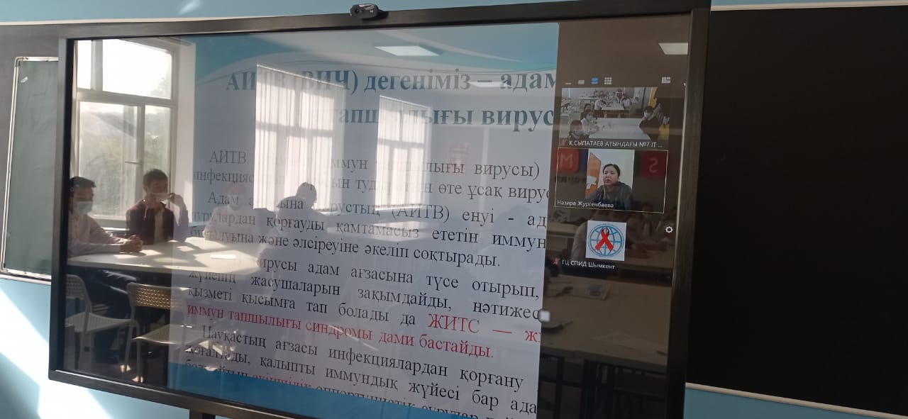 04.10.2021 жылы Шымкент қаласының денсаулық сақтау басқармасының «ЖИТС-тің алдын алу және оған қарсы күрес жөніндегі орталық» мамандары Zoom видео-байланыс ақпараттық жүйесінде онлайн семинар ұйымдастырып, өткізді. Семинарға: №7 мектеп лицей оқушылары қатысты. Іс-шара мақсаты: жастар мен жасөспірімдер арасында АИТВ инфекциясын алдын-алу, сақтану шаралары туралы кеңінен түсіндіру, салауатты өмір салтын қалыптастыру. Кездесу алдында және кездесуден кейін «АИТВ/ЖИТС-тің алдын алу» тақырыбында оқушылардың білімін анықтайтын онлайн сауалнама өткізілді.
