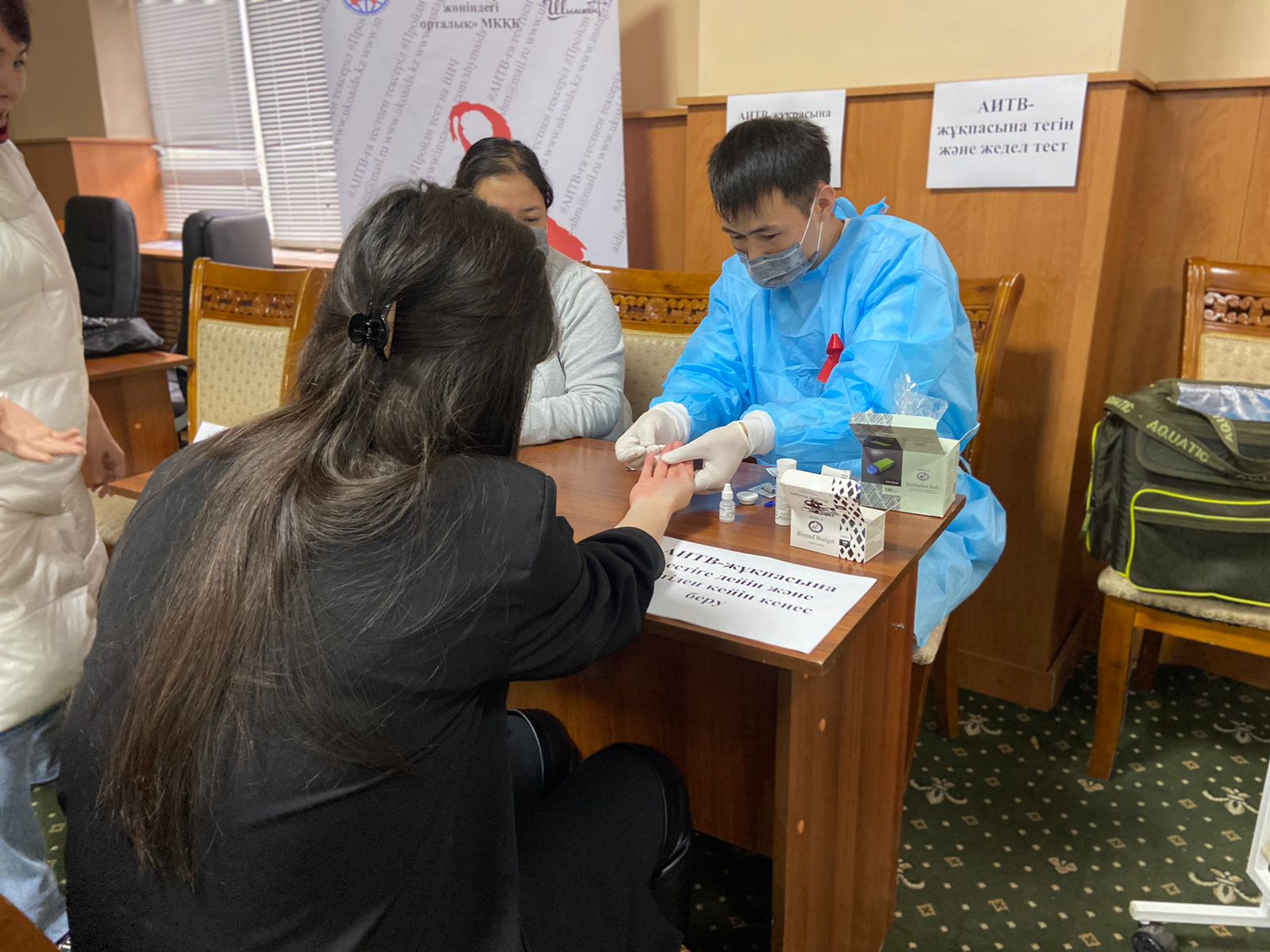 Науқан аясында ЖИТС орталығының қызметкерлері кәмелет жасқа толған жастарды өз еркімен АИТВ-жұқпасына жедел-тест арқылы тексеріп, тестіге дейін және тестіден кейін кеңес берді.