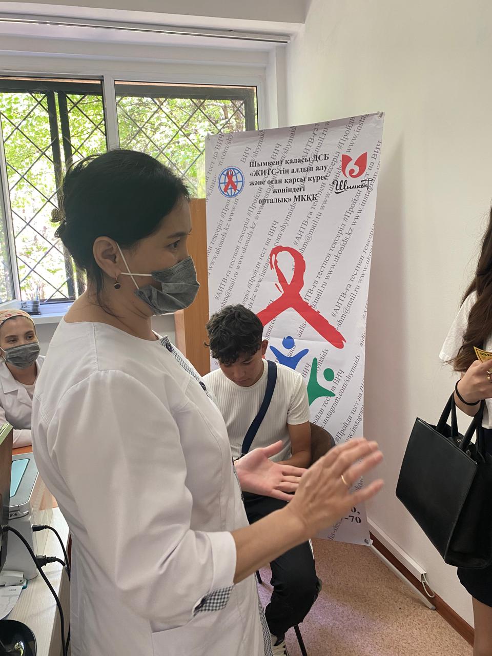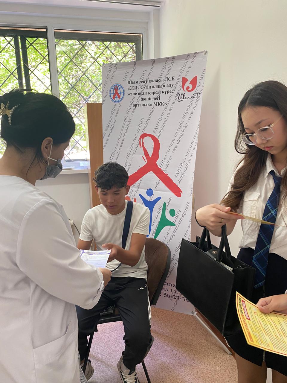 Шымкент қаласы ЖИТС орталығының мамандары АИТВ инфекциясын алдын – алу және наша тұтыну мәселелері, АИТВ-мен өмір сүретін адамдарды ауруына байланысты «таңба басу», қоғамнан аластатуды алдын алу жөнінде түсіндіру жұмыстарын жүргізді. Келушілерге және студентерге тест-жүйелерін пайдалана отырып, АИТВ-ға антигендер мен антиденелерді анықтау үшін экспресс-тестілеуден өту мүмкіндігі туралы ақпарат берілді, соның арқасында сараптама нәтижесін15- 20 минут ішінде алуға болатыны айтылды. Халықтың арасында ақпараттық парақшалар таратылды.