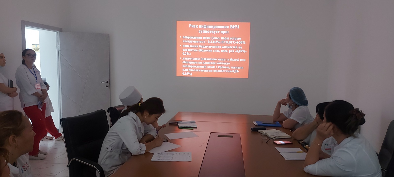 МКҚК – нің эпидемиологиялық бөлімінің эпидемиолог дәрігері Р.К. Даулеткулова және Шымкент қаласы «Kameya Pharm Group» ЖШС медицина орталығының бас дәрігерінің сапа жөніндегі орынбасары Жаукебаева С.К., дәрігер эпидемиолог Кашкимбаева А.К., медициналық статист Тохтиева А.К. қатысуымен Шымкент қалалық ДСБ «Шымкент қаласында адамның иммунитет тапшылығының вирусы инфекциясы мен жүре пайда болған иммунитет тапшылығы синдромының алдын-алу және емдеу бойынша семинар өткізді.