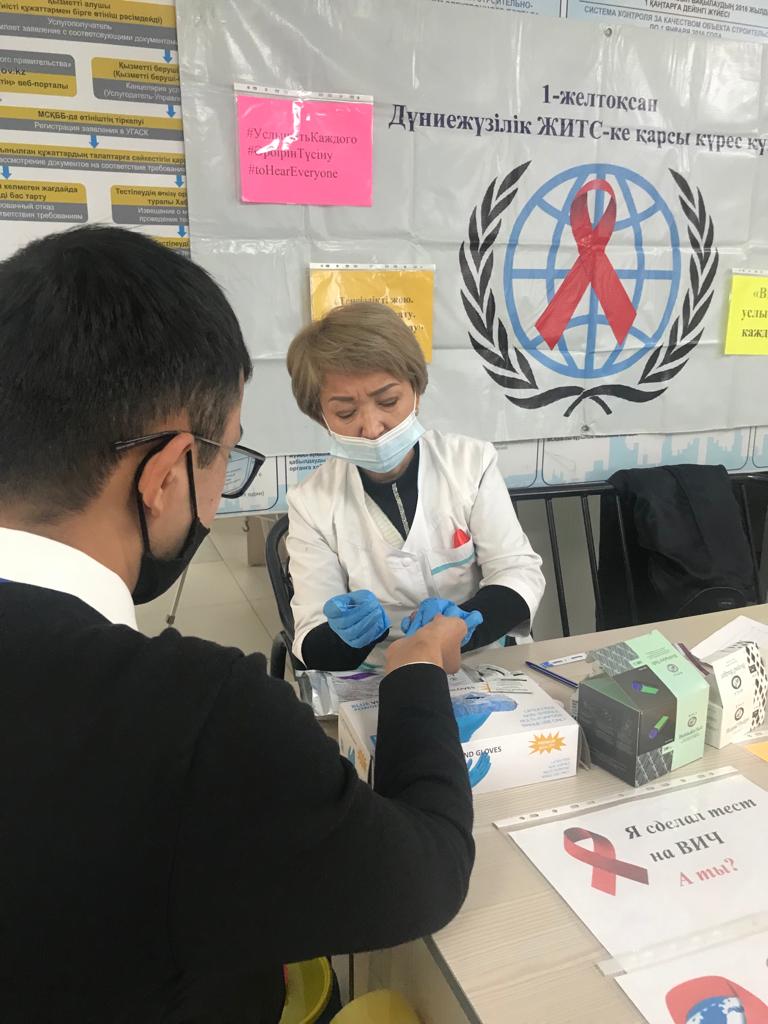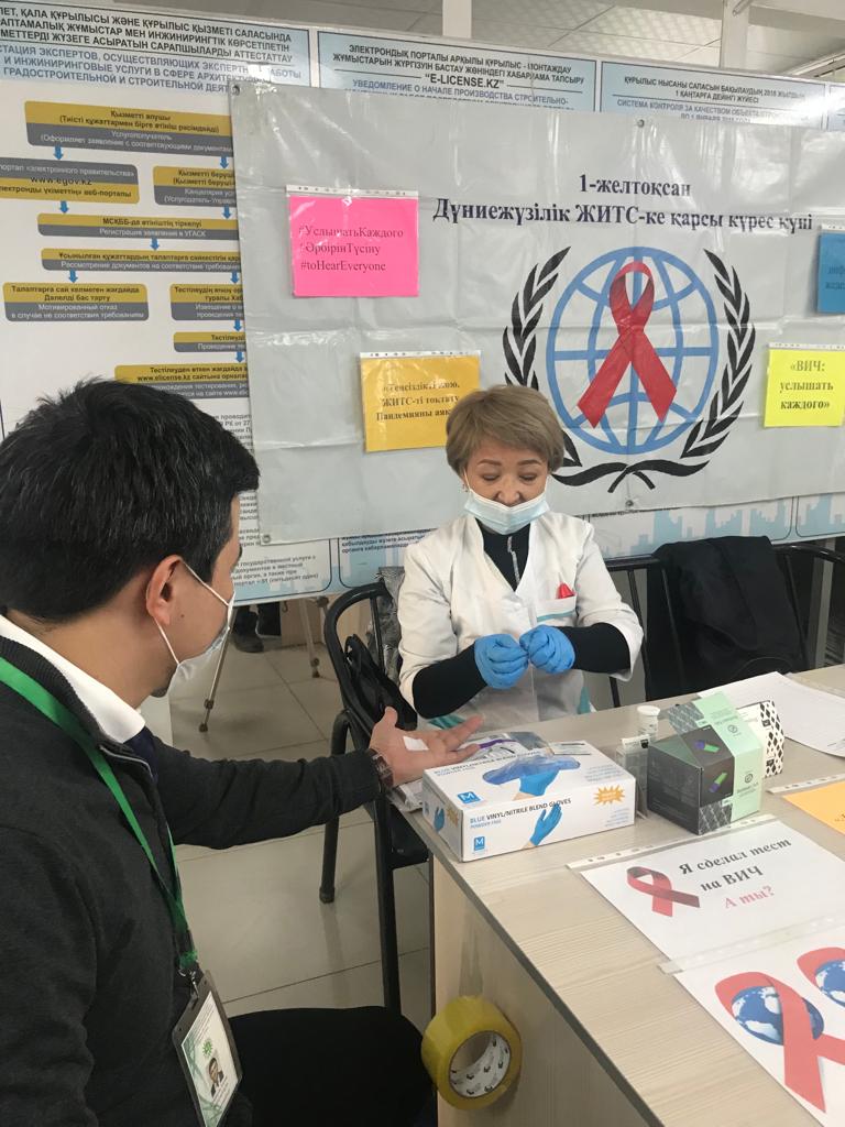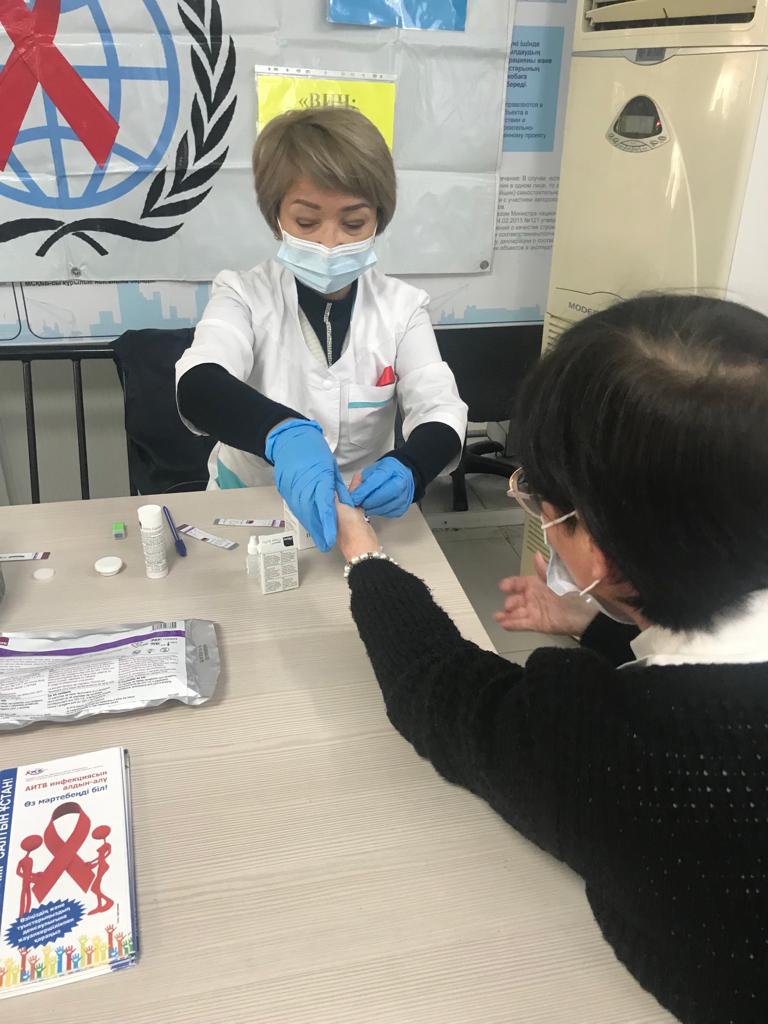 Сонымен бірге, клиникаға келушілерді АИТВ-жұқпасына жедел-тест арқылы тексеріп, тестіге дейін және тестіден кейін кеңес беріліп, ақпараттық материалдар таратылды.