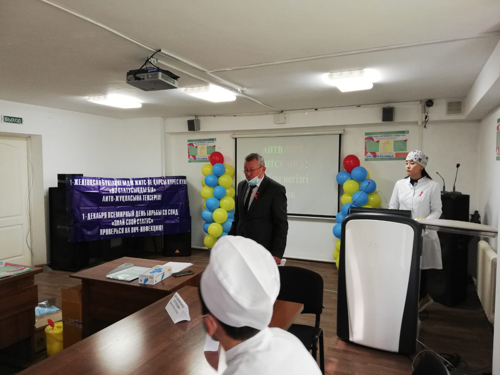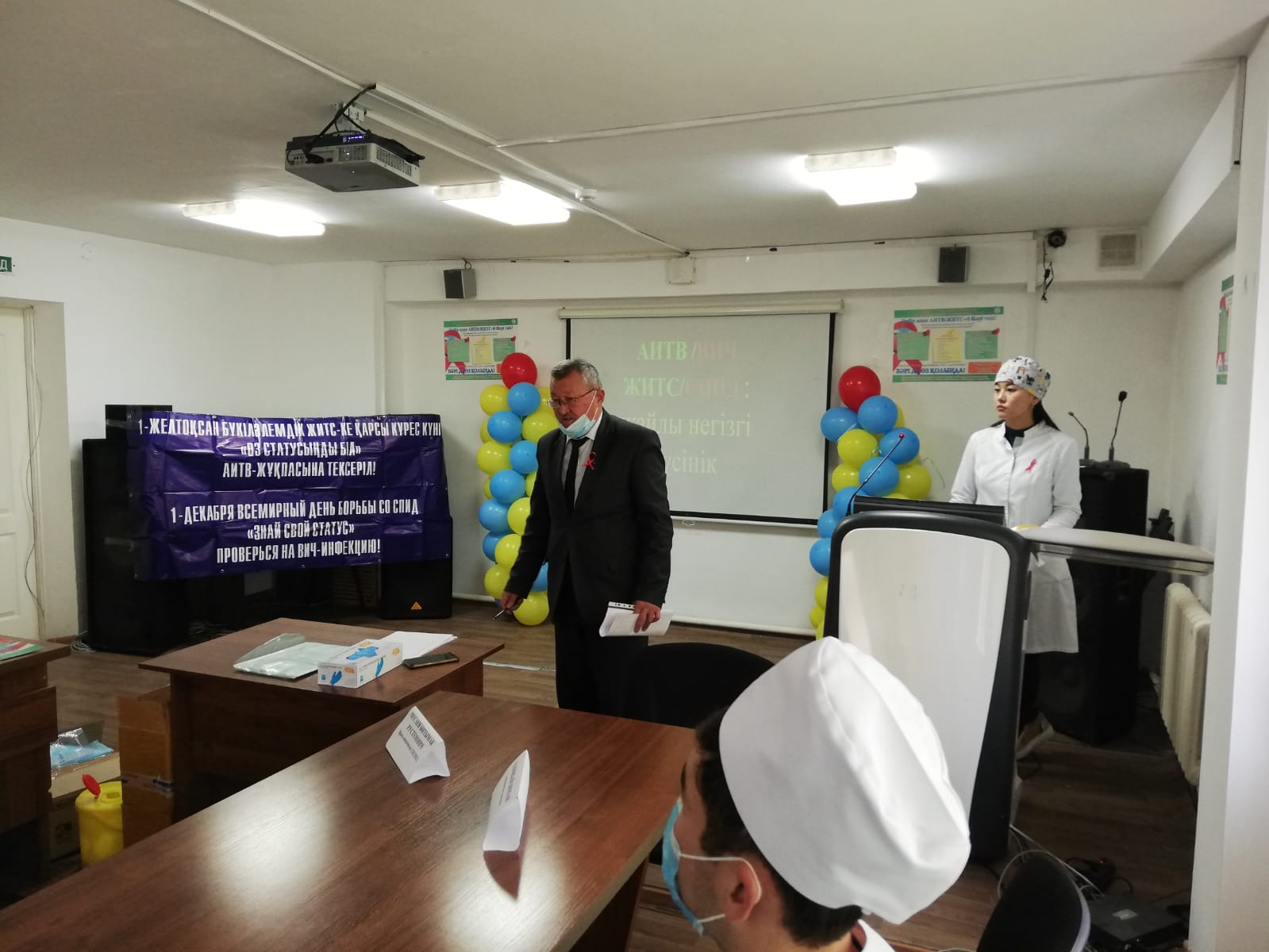 2021 жылдың 16 қарашасында Шымкент қаласы ДСБ-ның «ЖИТС тің алдын алу және оған қарсы күрес жөніндегі орталық» MKҚК-нің қызметкерлерінің ұйымдастыруымен 1-желтоқсан Дүниежүзілік ЖИТС пен күрес күніне орай «Теңсіздікті жою.ЖИТС-ті тоқтату.Пандемияны аяқтау.» ұранымен Шымкент жоғарғы медициналық колледжінде науқан өтті.Науқан барысында ЖИТС орталығының қызметкерлері Халық арасында АИТВ/ЖИТС инфекциясының алдын алу мақсатында келушілерге ерікті түрде жедел - тест жүргізіп,салауатты өмір салтын ұстануға шақырды. Жұмыс барысында тестіге дейін және тестіден кейінгі кеңес беріліп,ақпараттық танымдық материалдар таратылды.