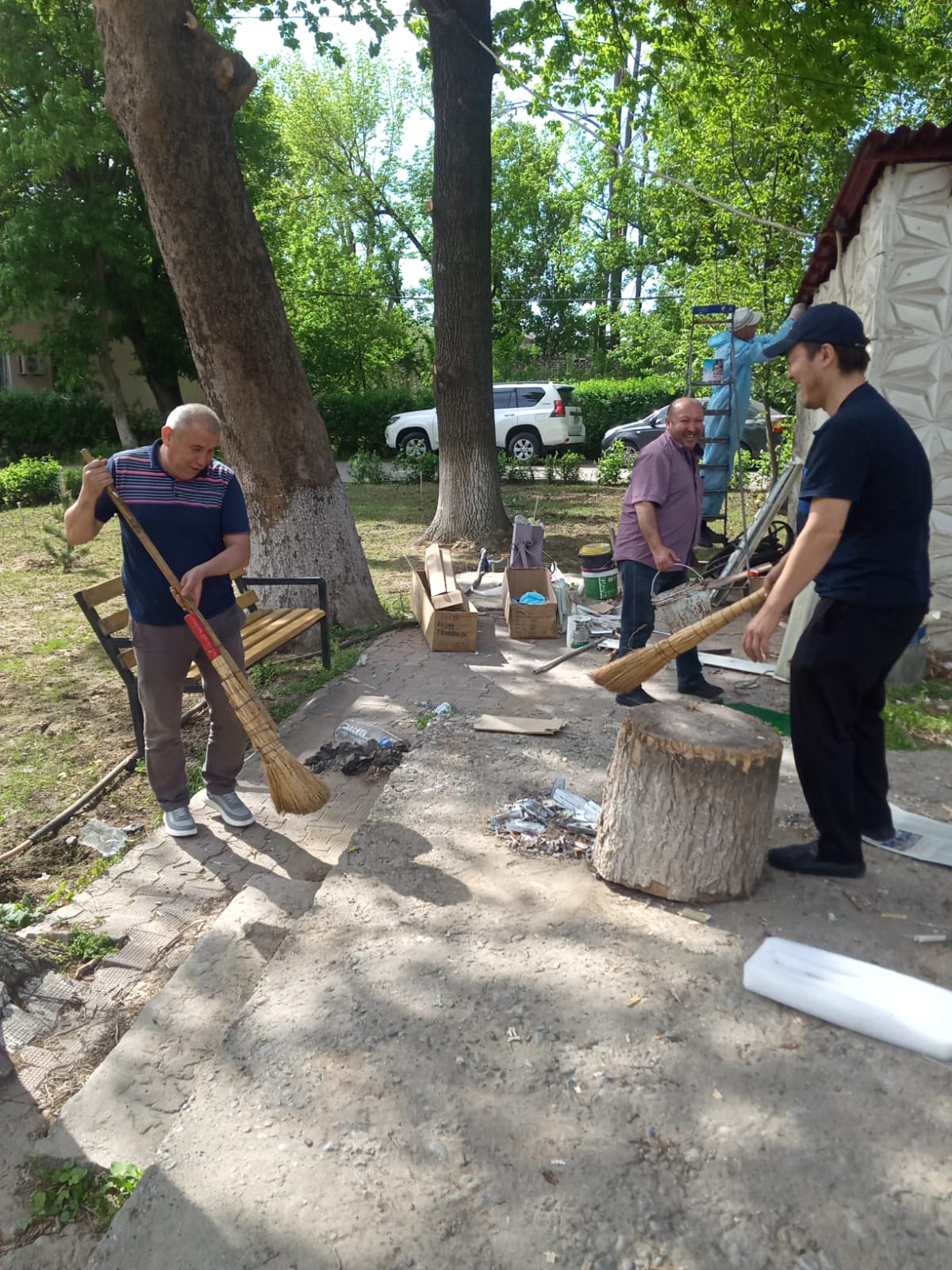 Іс-шара барысында орталықтың қызметкерлері қажетті құрал-жабдықтармен: қолғаптар мен әк щеткасымен қамтамасыз етілді. Орталықтың ауласына көшеттер отырғызылды, ағаштардың түптері әктелінді.
