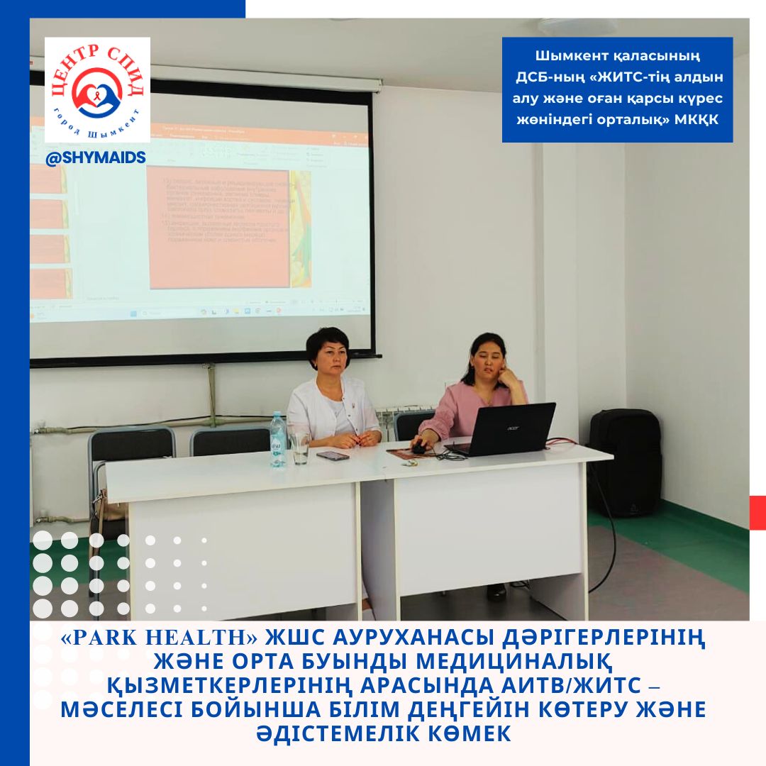 18.04.2024 ж «Park Health» ЖШС ауруханасы дәрігерлерінің және орта буынды медициналық қызметкерлерінің арасында АИТВ/ЖИТС – мәселесі бойынша білім деңгейін көтеру және әдістемелік көмек.