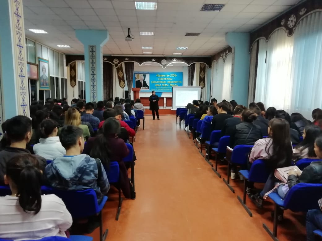 Кездесу барысында баяндама тыңдалып, студенттер арасында тренингтік ойындар ұйымдастырылып жəне ақпараттық кітапшалар таратылды. Жастар және колледж әкімшілігі мамандарға өз тараптарынан алғыстарын айтты.