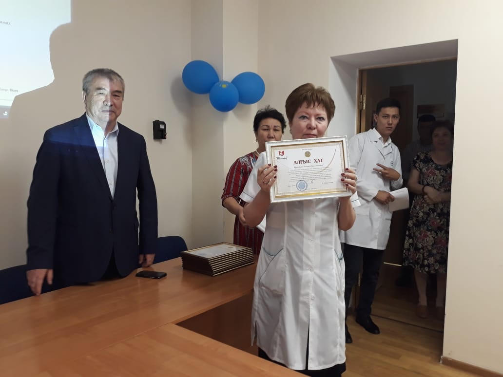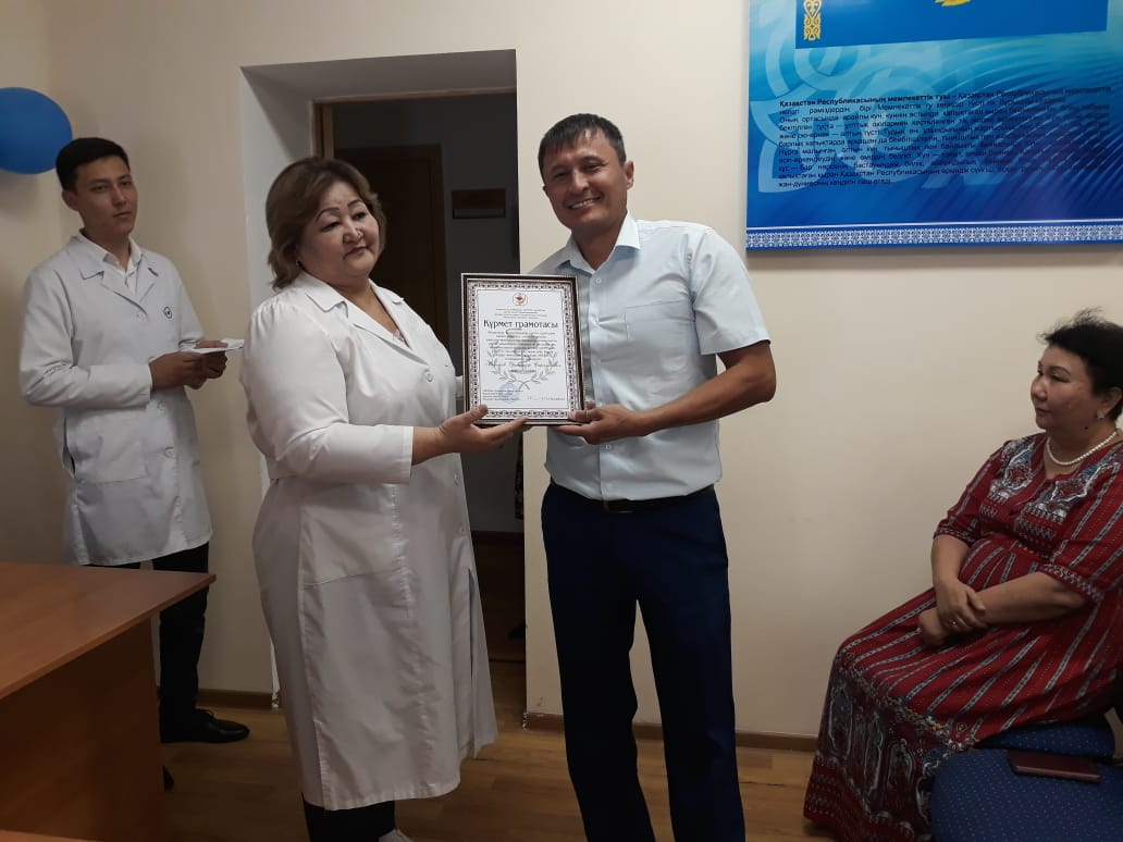 Отдельную благодарность и свои поздравления выразили представители Группы взаимопомощи людей живущих с ВИЧ, отдел лечебно-профилактичекой работы и диспансеризации, заведующая отделом Сапарова Ж. И врачи инфекционисты Умирзахова М. и Бактыбаева Б. награждены «Благодарственными письмами» от модератора Группы взаимопомощи людей живущих с ВИЧ.