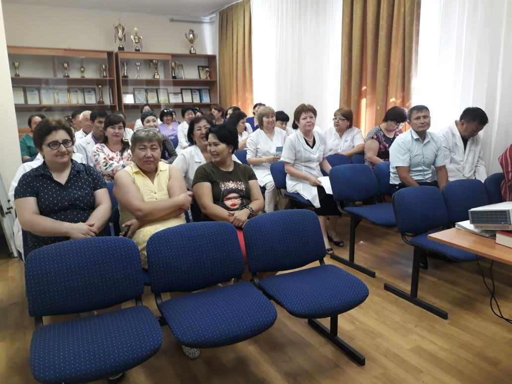 Заведующие эпидемиологическим отделом Есиркепов Е., отделом профилактической работы Абдиева Ф., председатель профсоюзного комитета организации Абдрашова Г. и главный бухгалтер Сиримбетова П. поздравили коллег с профессиональным праздником и отметили вклад и заслуги в труде. В ходе собрания были показаны подготовлены поздравления в стихах, показаны видиоролики на медицинские темы и прослушаны поздравительные мелодии.