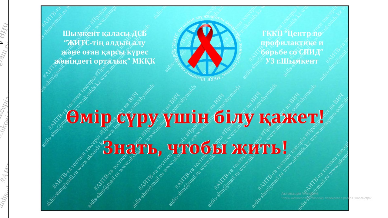 В городе Шымкент ВИЧ-инфекция впервые выявлена в 1993 году. Наиболее высокий уровень инфекции приходится на возрастную группу 15-49 лет – 84 %. По путям передачи преобладает половой – 83%.