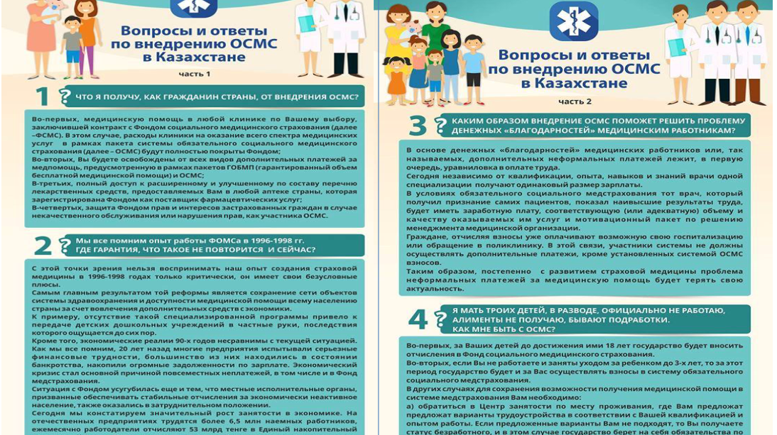 В Казахстане с июля текущего года начинает действовать система обязательного социального медицинского страхования. Основные принципы нашей модели медстрахования: солидарность, всеобщий охват и справедливость как при сборе средств – «от каждого по платежеспособности», так и получении медицинской помощи – «каждому по потребностям».