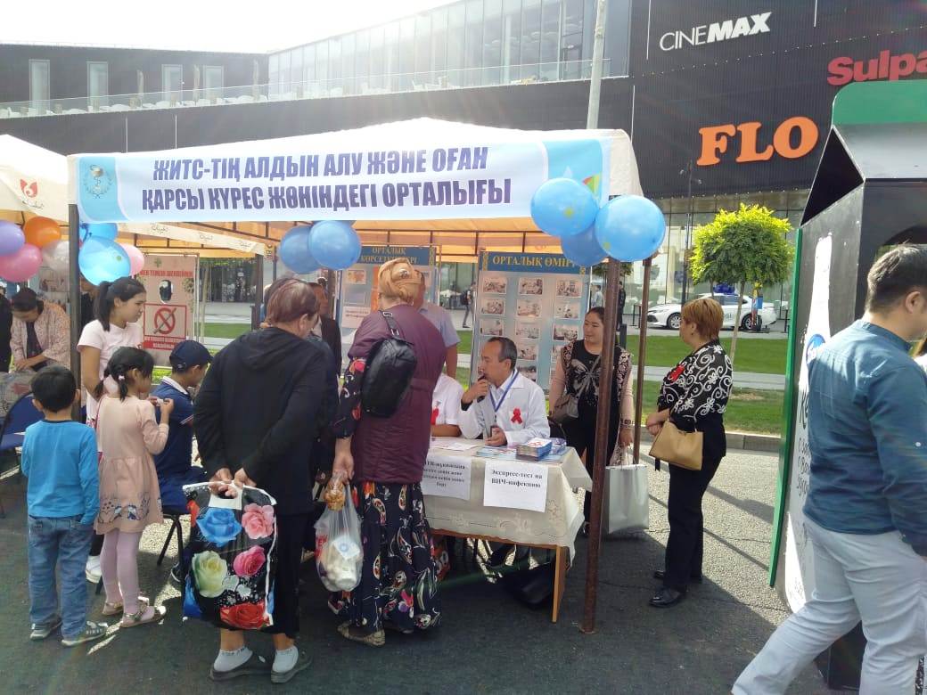 06 сентября 2019 года в городе Шымкент проведена широкомасштабная акция «Фестиваль здоровья – 2019». Цель мероприятия: приобщение населения к спорту, привитие интереса к здоровому образу жизни. В ходе мероприятия были организованы спортивные эстафеты, концертные программы, медицинскими работниками проводились показы по оказанию первой медицинской помощи. Жители и гости города получили медицинские консультации от квалифицированных врачей. В ходе акции специалисты Центра СПИД провели экспресс-тестирование, раздали листовки, довели информацию для населения о передаче ВИЧ/СПИД. Экспресс-тестирование прошли - 58 человек.